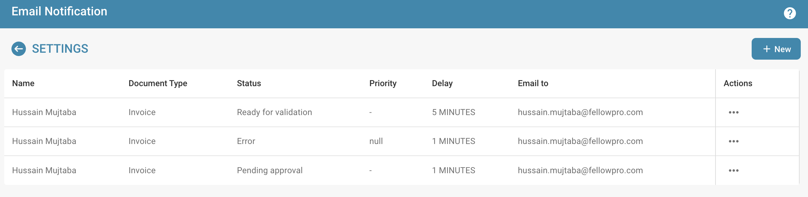 Edit a notification: To edit an existing notification, find the notification in the list and select the edit option. This allows you to change the notification settings, such as the document type, status, triggering events or recipients.