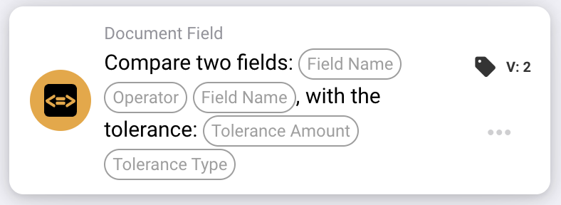 This workflow card is designed to automate actions by comparing the values of two specified document fields, with the added ability to apply a tolerance value. This feature enables the system to consider a margin of error (tolerance) when comparing field values, allowing for more flexible decision-making within workflows.