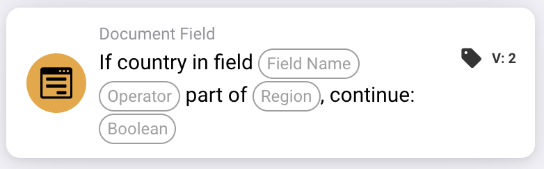 The "Country in Field Comparison" workflow card is an essential tool for automating processes that depend on geographical rules, such as compliance with trade agreements or political affiliations. By comparing country data with specific regions like the European Union, Schengen Area, or NAFTA, this card ensures that the system applies the right processing logic, improving efficiency and ensuring accurate workflow execution based on geographical conditions.