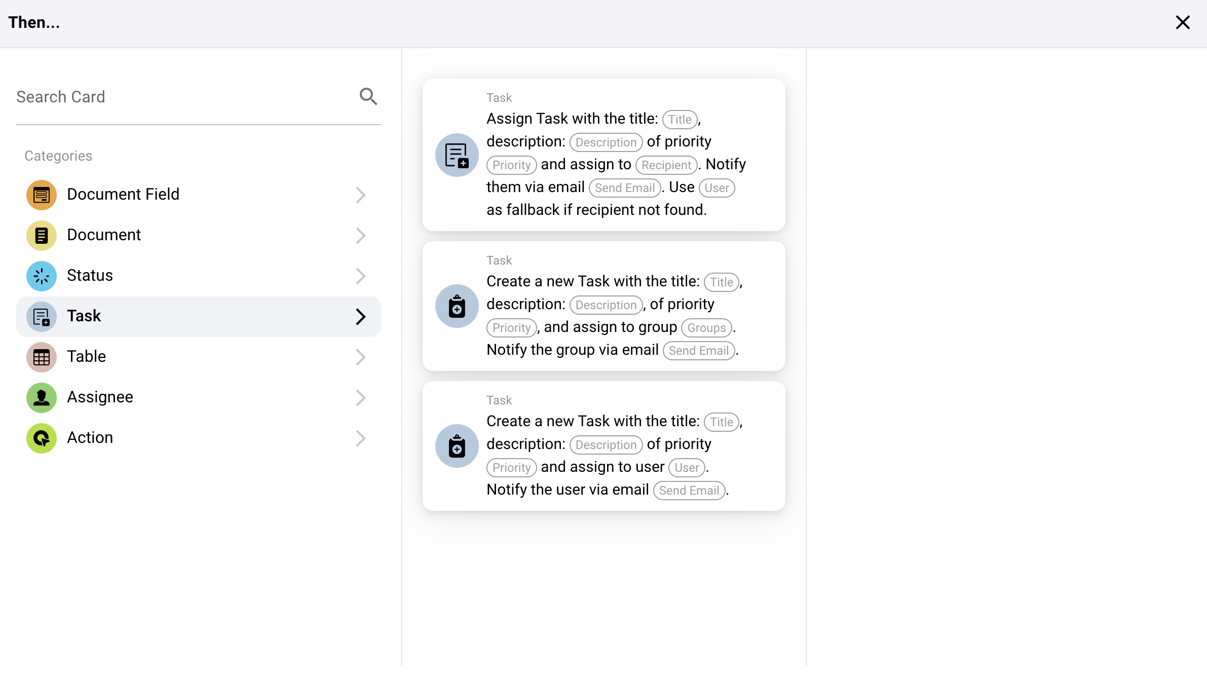 * **Assign Document to User or Group:** Directly assigns a document to a user or group, ensuring responsibility is designated appropriately.