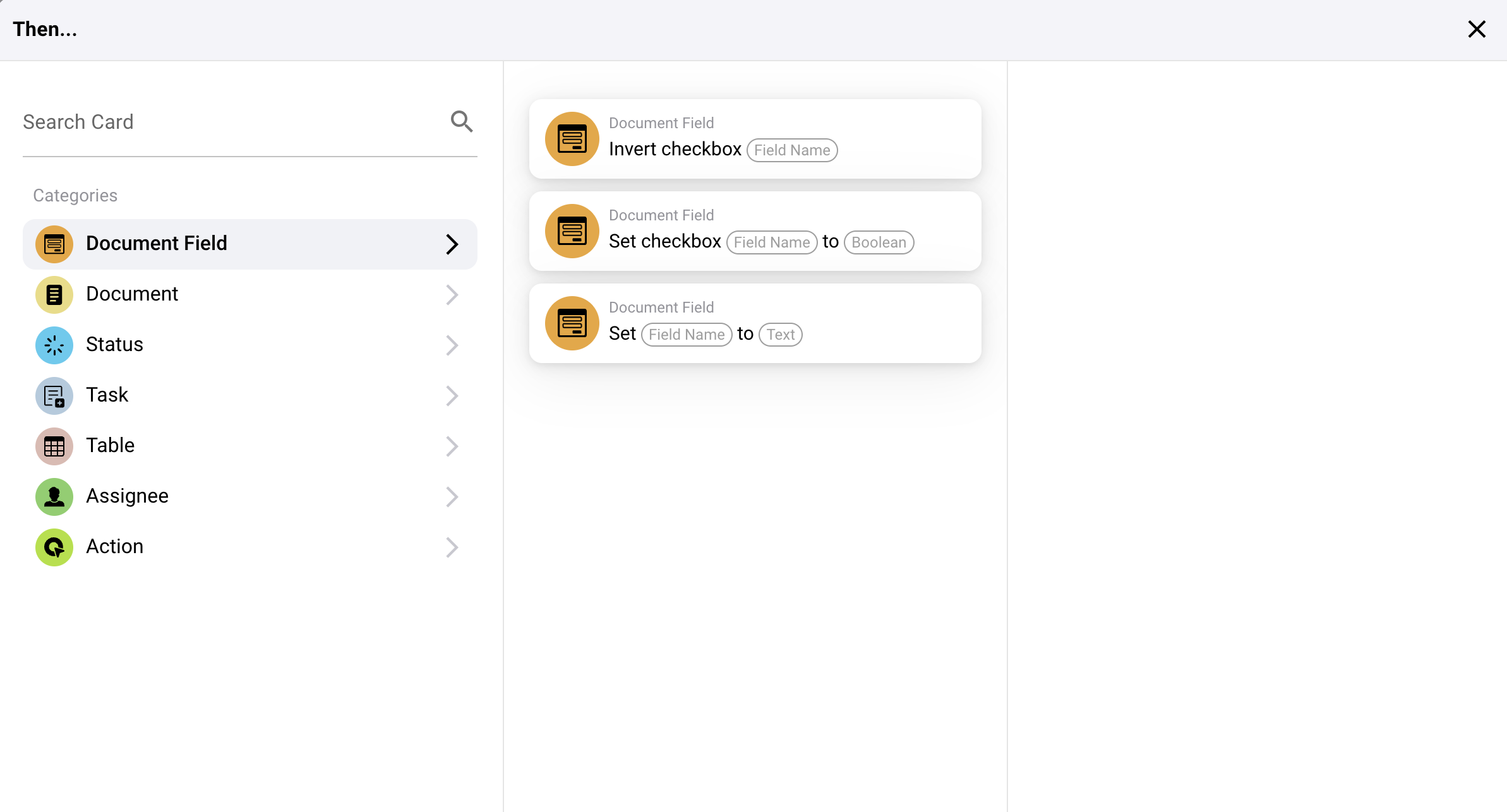 * For data management tasks, "Set Checkbox" or "Set Field to Text" actions ensure that document fields are updated automatically, reducing manual data entry and the potential for errors.