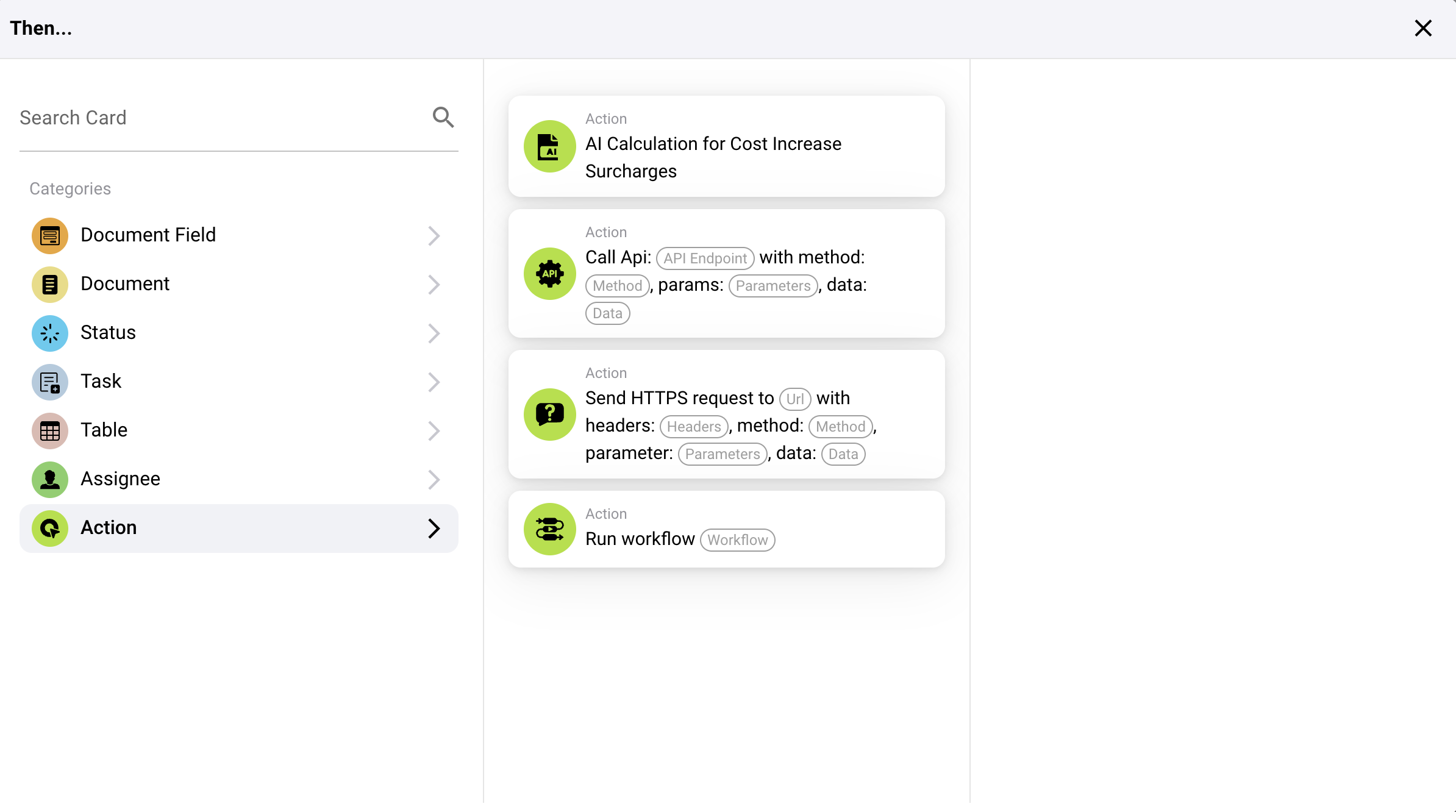 These action cards are used to automate responses based on specific triggers identified in the earlier parts of the workflow setup. For instance: