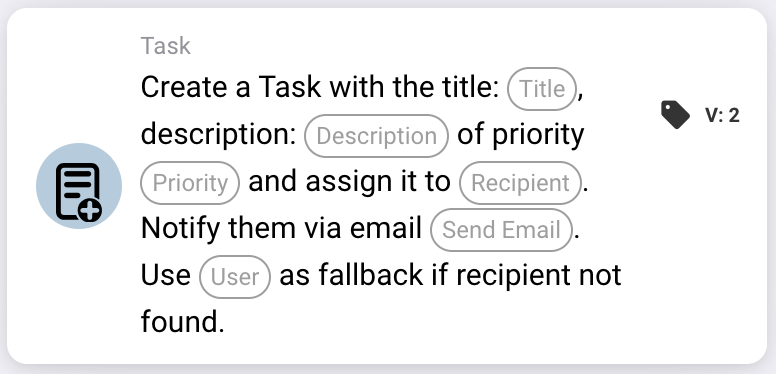 The **"Create Task with Fallback"** workflow card ensures seamless task delegation by integrating a fallback mechanism. By assigning tasks based on roles and providing an alternate user option, it enhances reliability and flexibility in task management processes.
