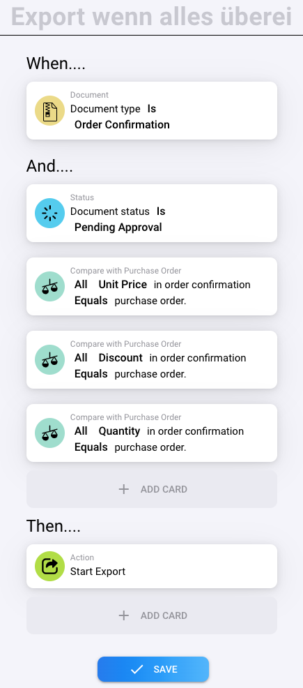 * Additional checks are performed to ensure the document's details align with specific requirements. These checks might involve verifying information within order confirmations or purchase orders. Specify the particular conditions that need to be met. For example:
