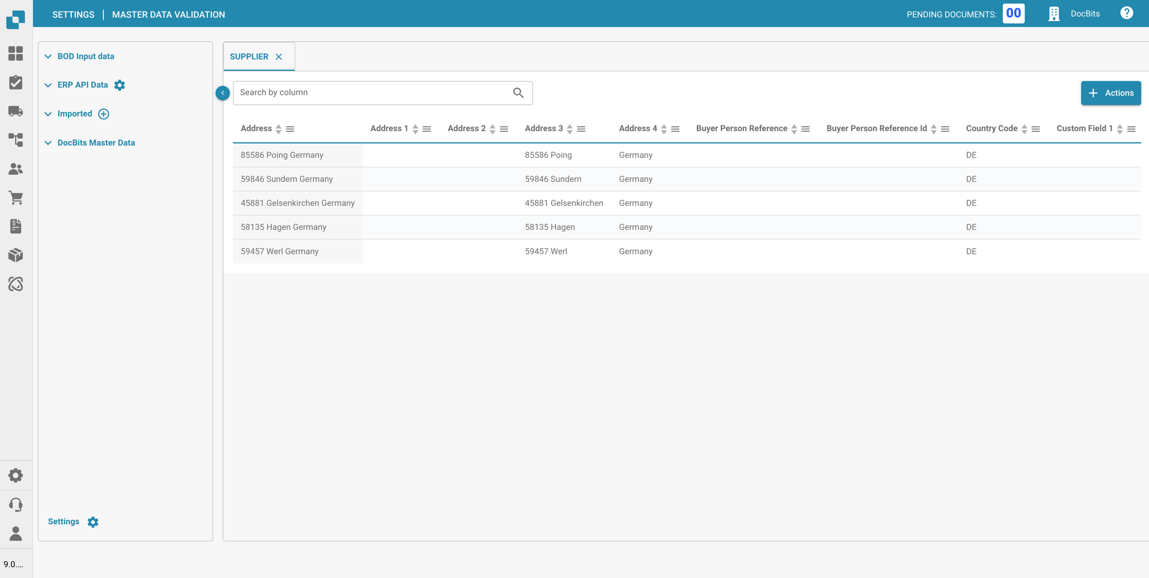 Zentralisierte Datenverwaltung: Diese Funktion dient als zentrale Ablage, in der Daten aus verschiedenen Quellen wie Lieferanten, Kundenadressen, Steuercodes und mehr gespeichert und verwaltet werden können. Sie bietet einen einzigen Referenzpunkt für alle Stammdaten und stellt so Konsistenz und Genauigkeit in Ihrem Unternehmen sicher.