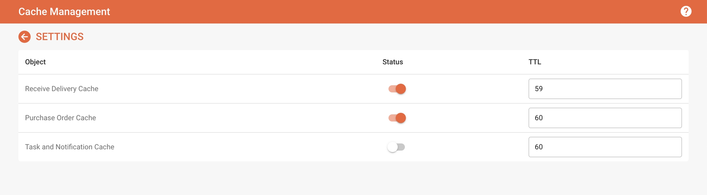 In de instellingen voor "Cachebeheer" kunt u de automatische wissen inschakelen voor de Ontvangen Levering Cache, Inkooporder Cache en Taak- en Notificatie Cache.