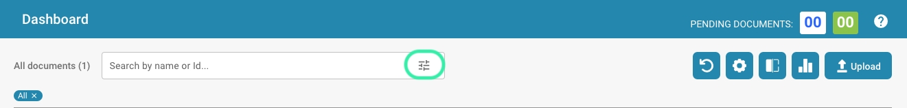 Als je op zoek bent naar een of meer specifieke documenten, zijn de volgende opties beschikbaar. Binnen de zoekbalk hebben we verschillende tools aangeboden om je te helpen het document te vinden dat je zoekt. Om toegang te krijgen tot deze tools, selecteer je het volgende pictogram.