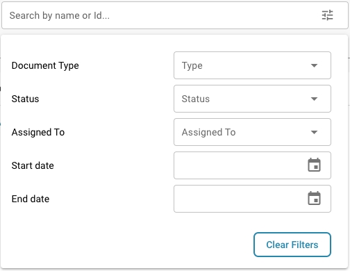 Kies uit de vooraf gedefinieerde filteropties (bijv. Datum, Documenttype, Toegewezen Persoon).