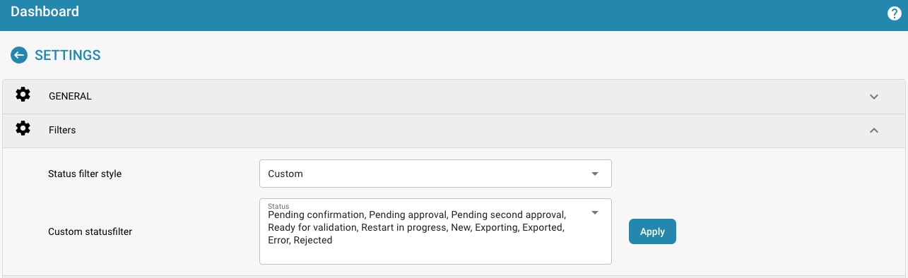 Open het filtermenu in de instellingen onder Dashboard en klik op "Filters".