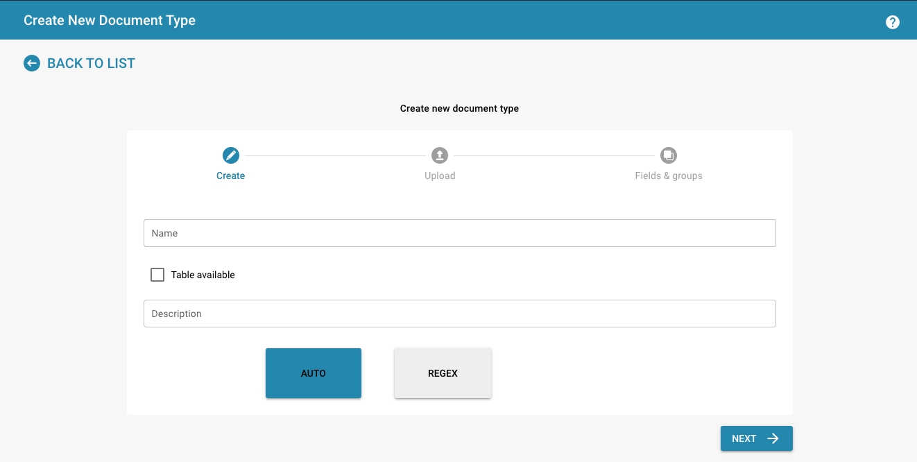 Enter a name for the new document type (e.g. "Invoice", "Contract", "Report").
