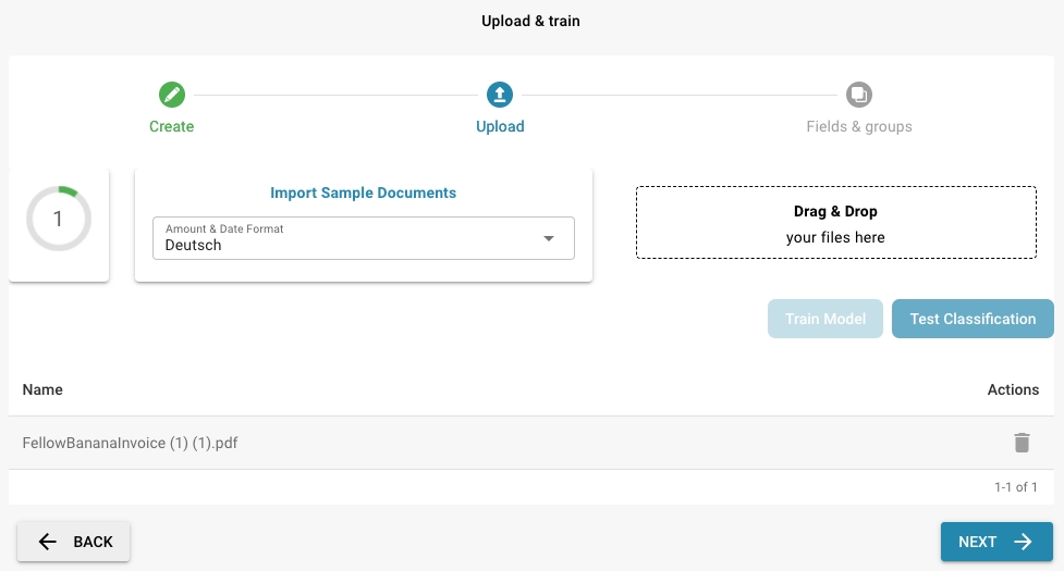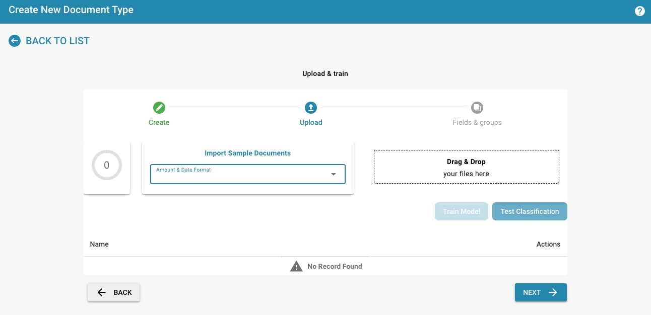 Upload sample documents via drag & drop
