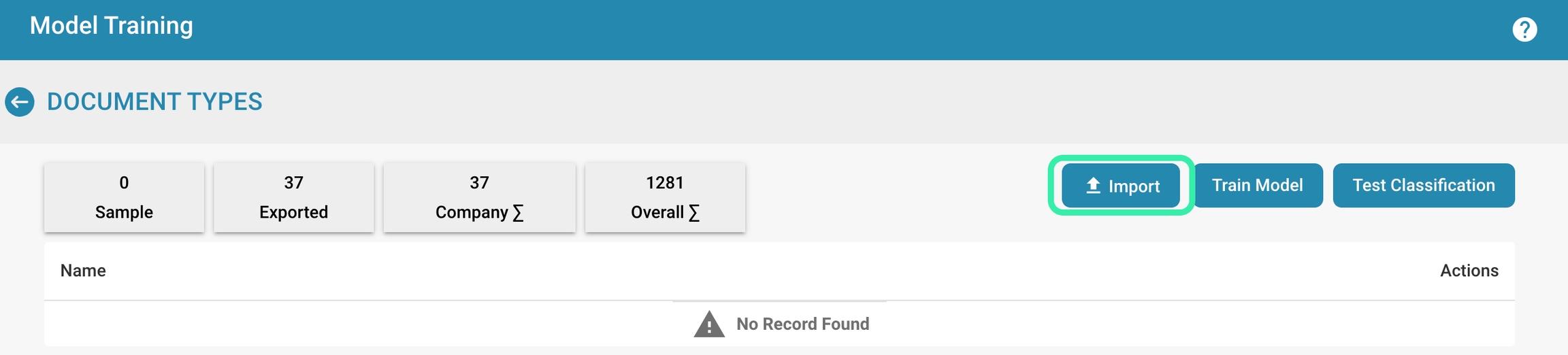 Provide detailed instructions on how to import sample documents for training, including the format and document types to use.
