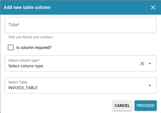 Tabelnaam: Geeft aan bij welke tabel de kolom hoort, en koppelt deze aan een specifiek documenttype zoals INVOICE_TABLE.