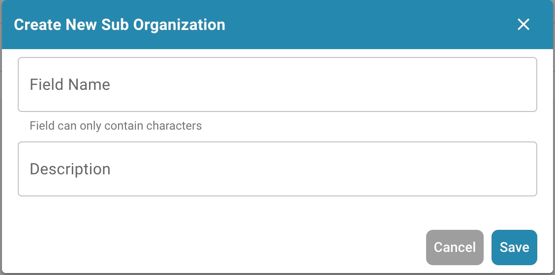 Enter the details of the sub-organization you want to create, the name and description, then click on the SAVE