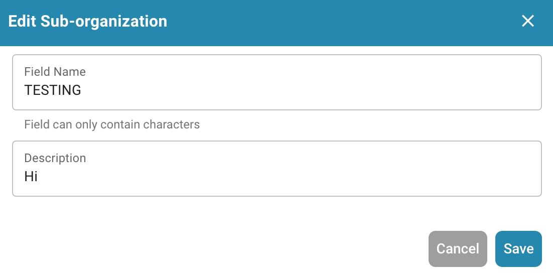 Editing suborganization settings: Administrators can edit the settings and properties of a suborganization, including its name, description, or hierarchy level within the system.