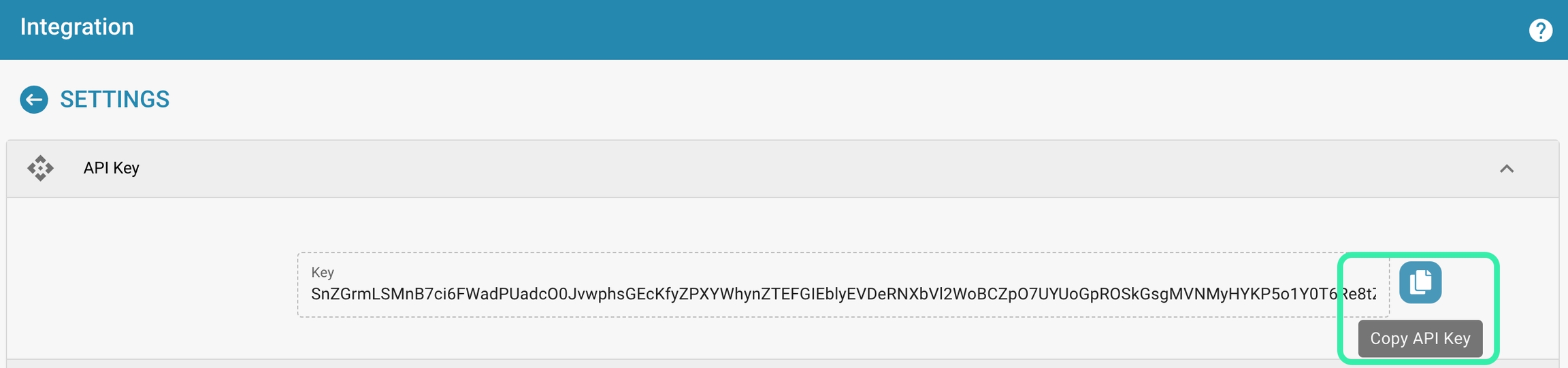 Navigate to the API key settings in your DocBits account. Here you can find the API key, click "Copy" to copy the key.