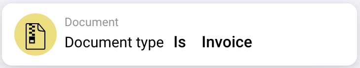 A workflow can be started with these two cards. Here you can decide with which document type the workflow begins or whether it should not affect selected document types.