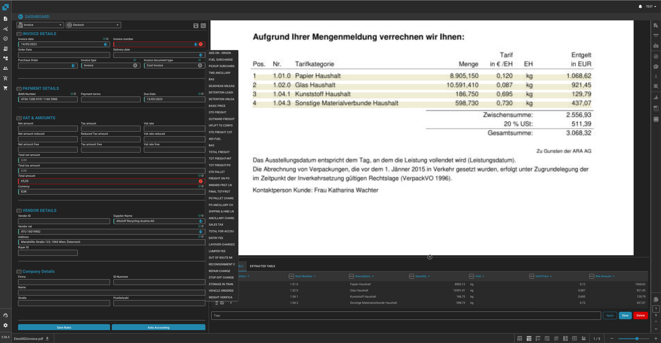 In de komende release zal een belangrijke verbetering aan de classificatie- en extractiemogelijkheden worden geïntroduceerd, specifiek gericht op tabelregels binnen documenten. Deze nieuwe functie stelt gebruikers in staat om te definiëren of een regel in een tabel een kost vertegenwoordigt. Deze functionaliteit is bijzonder nuttig in gedetailleerde financiële documenten, zoals facturen, waar het onderscheid maken tussen verschillende soorten transacties—zoals kosten, belastingen of vergoedingen—cruciaal is voor nauwkeurige verwerking en administratie.