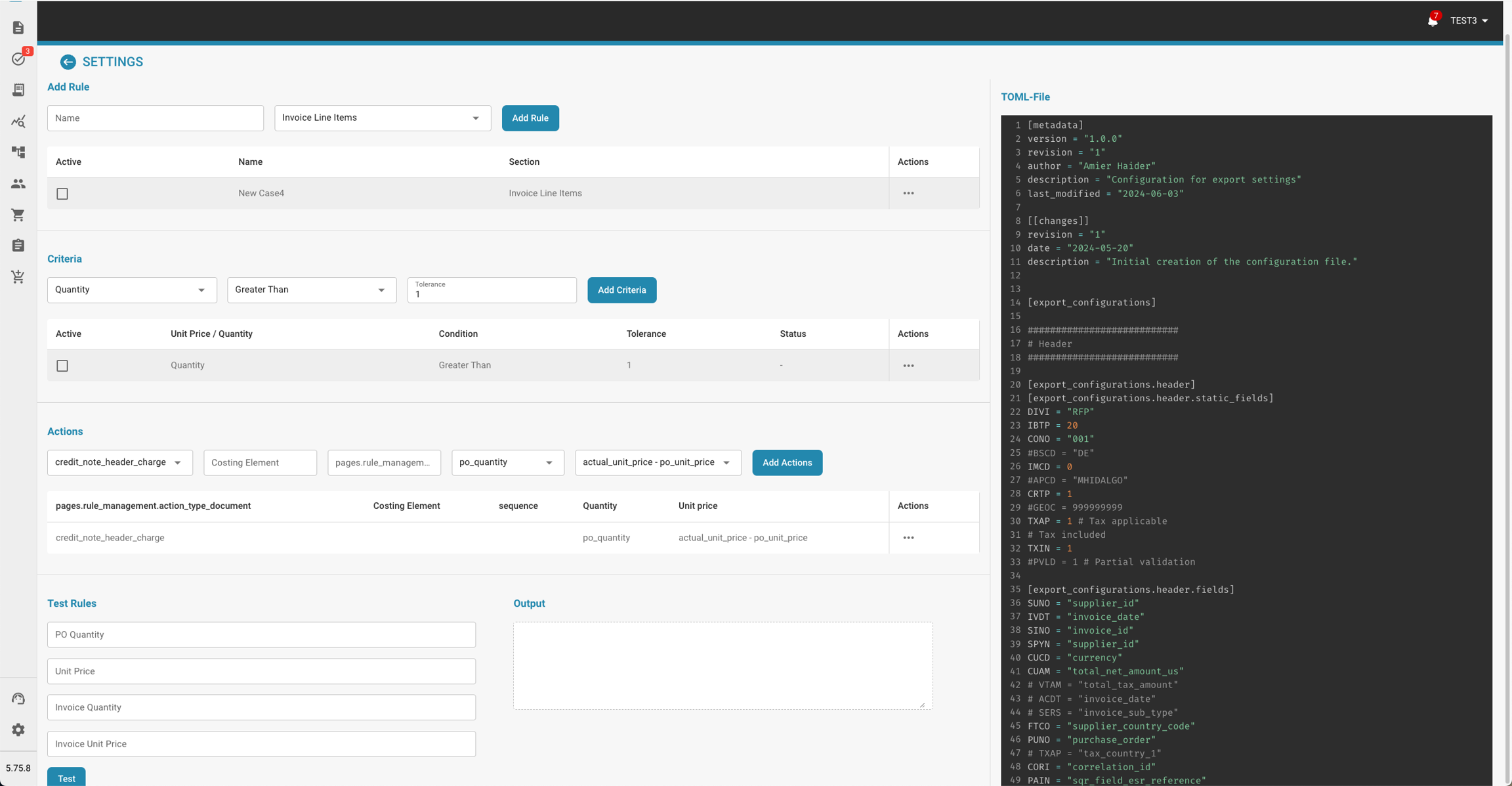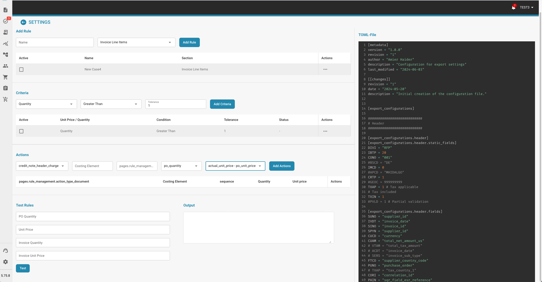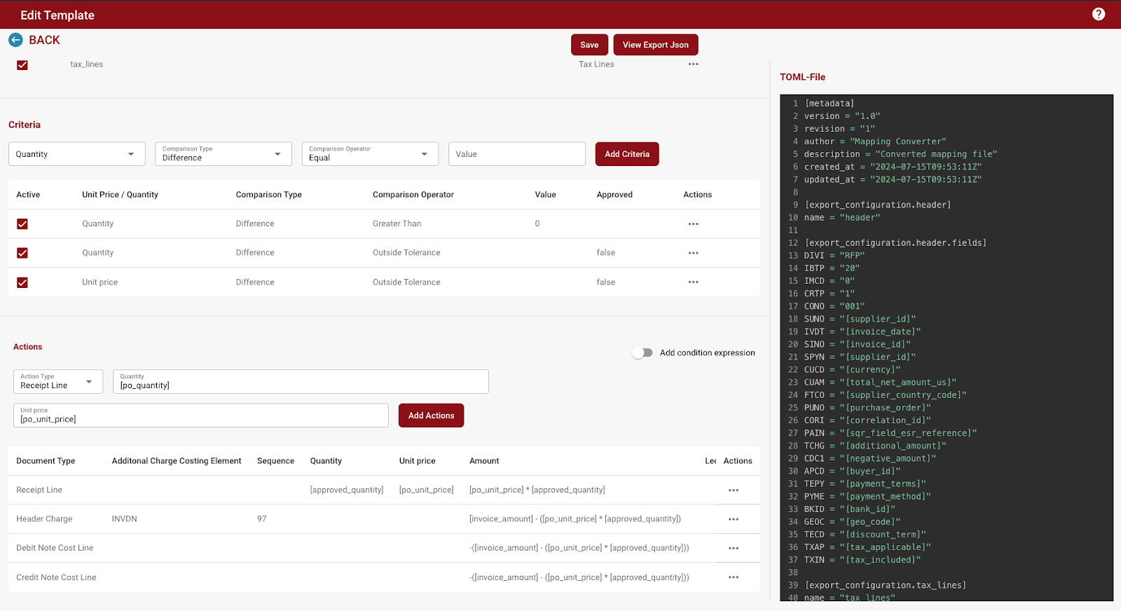 Definieer criteria (bijv. Hoeveelheid > PO Hoeveelheid) voor factuurregel items.