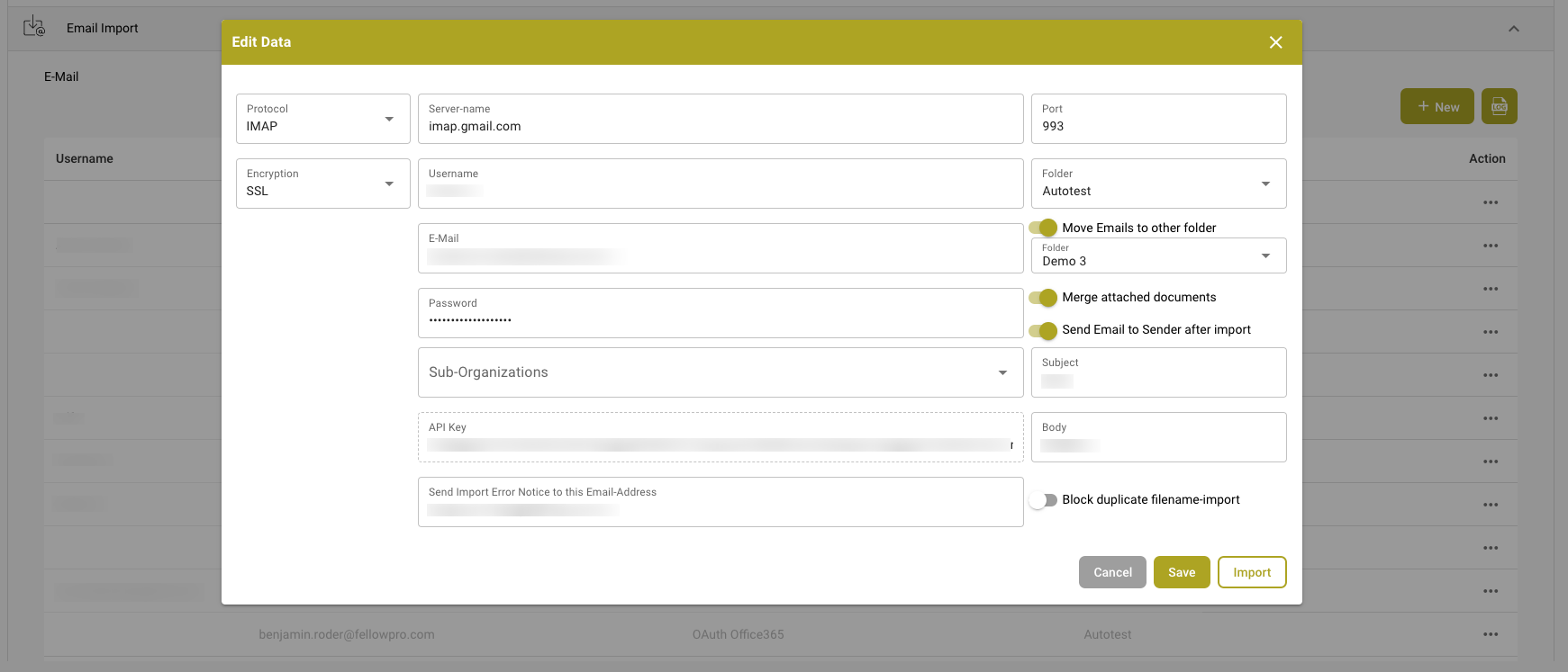 Filteroptie voor E-mail Import Log: Gebruikers hebben nu de mogelijkheid om de importlogboeken te filteren en de tabel te sorteren voor een duidelijker, efficiënter overzicht. Deze verbetering stroomlijnt het proces van het identificeren en beheren van e-mailgegevens, wat troubleshooting en algemeen logbeheer verbetert.