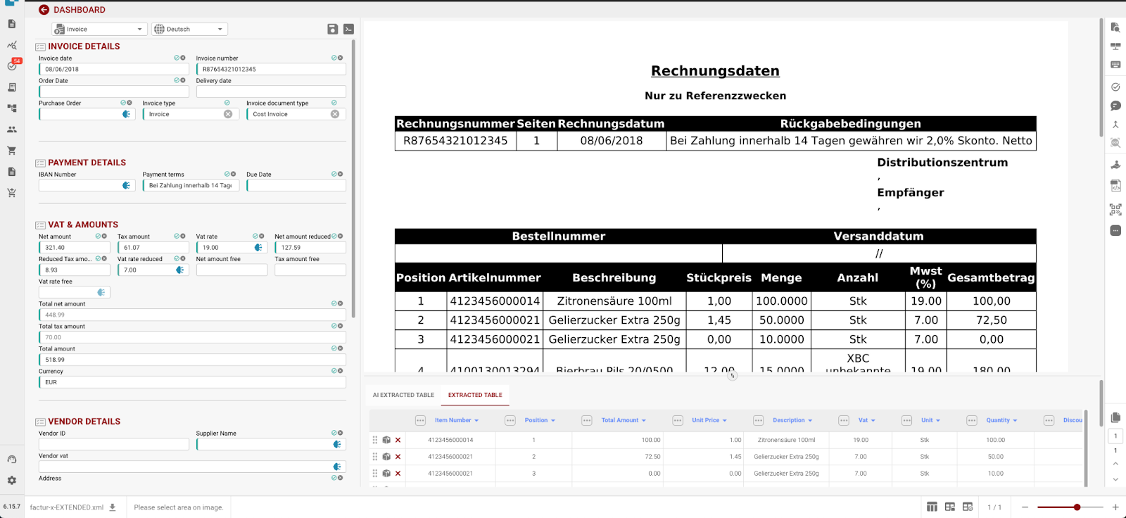 Leverancier-gebaseerde AI Model Selectie: Gebruikers kunnen nu het AI-model selecteren dat wordt gebruikt voor gegevensextractie op leveranciersbasis. Deze verbetering maakt fijnafgestemde optimalisatie mogelijk, wat zorgt voor betere extractienauwkeurigheid voor verschillende leveranciers en verbeterde algemene gegevensverwerkingsresultaten. Leer meer