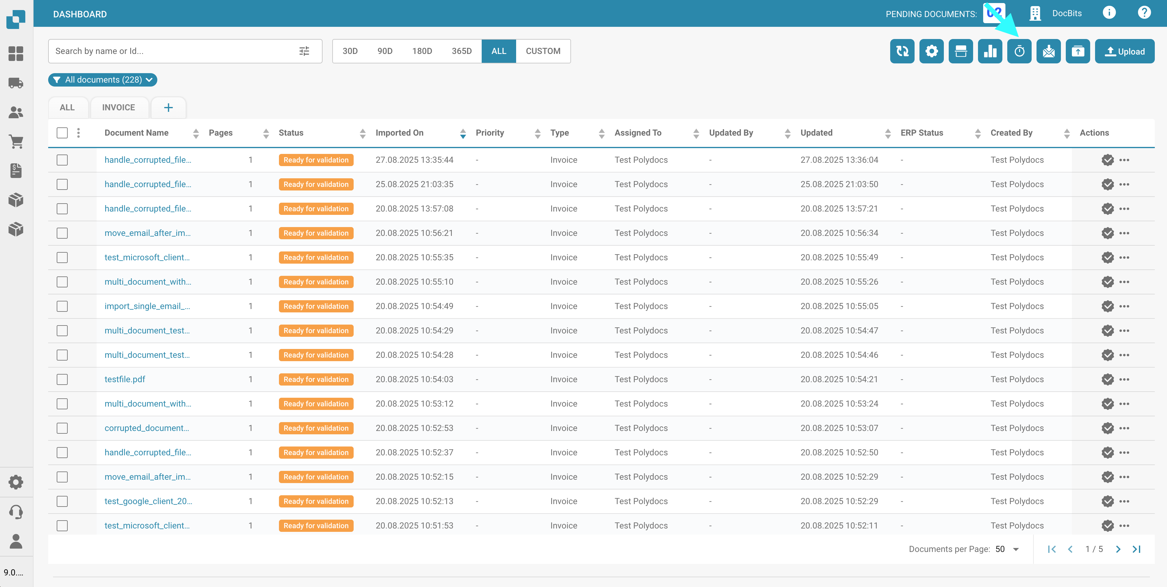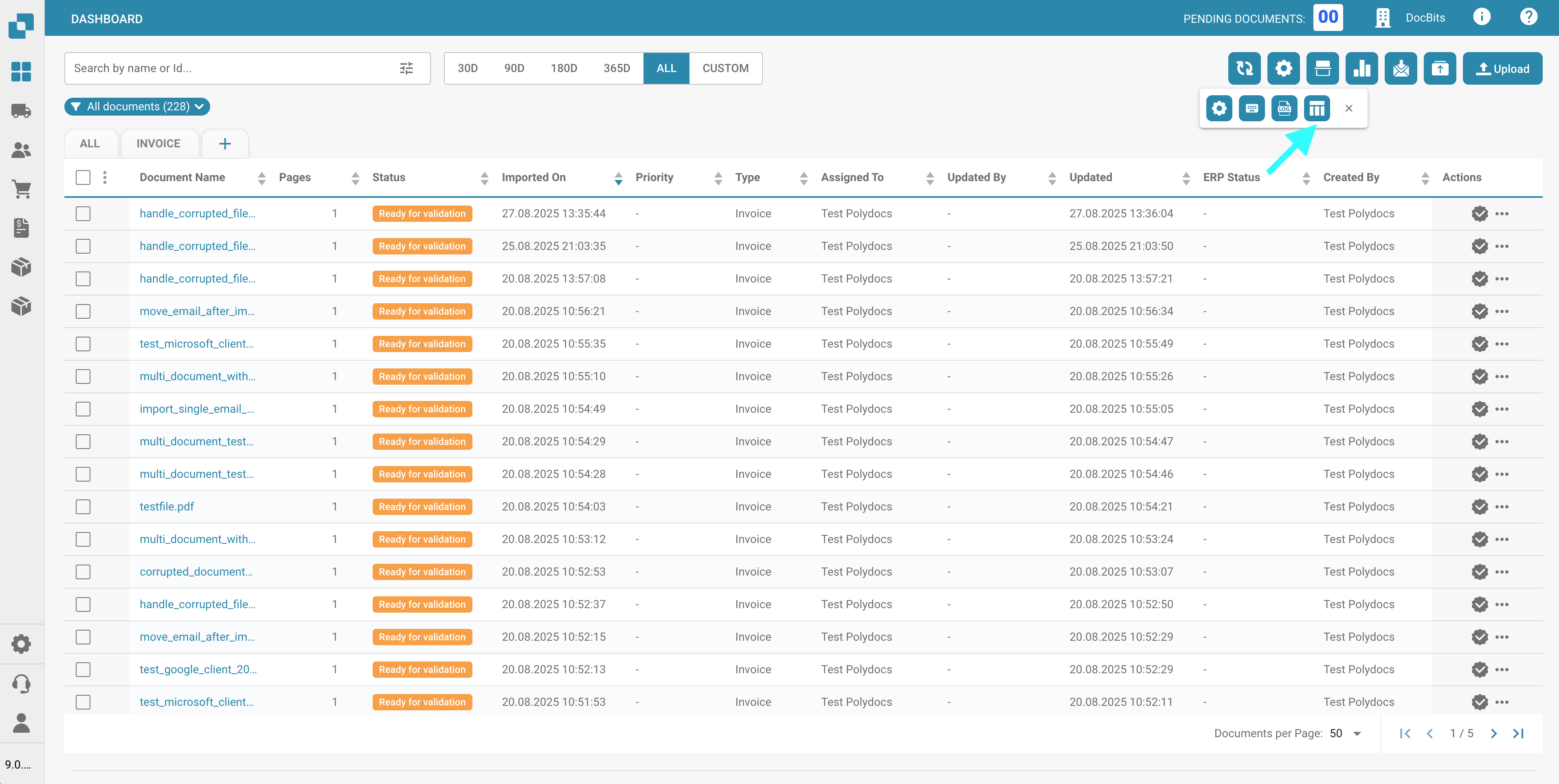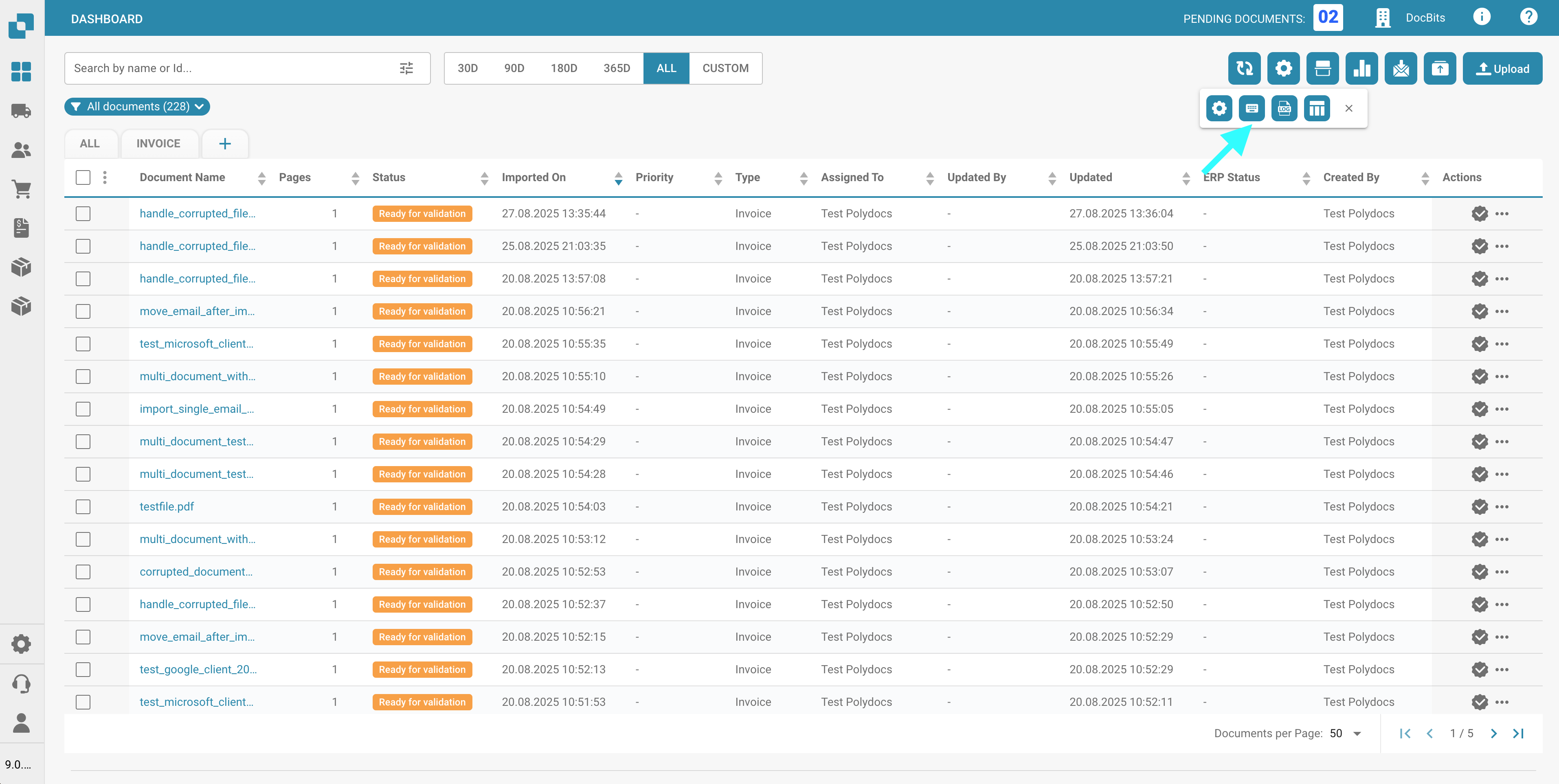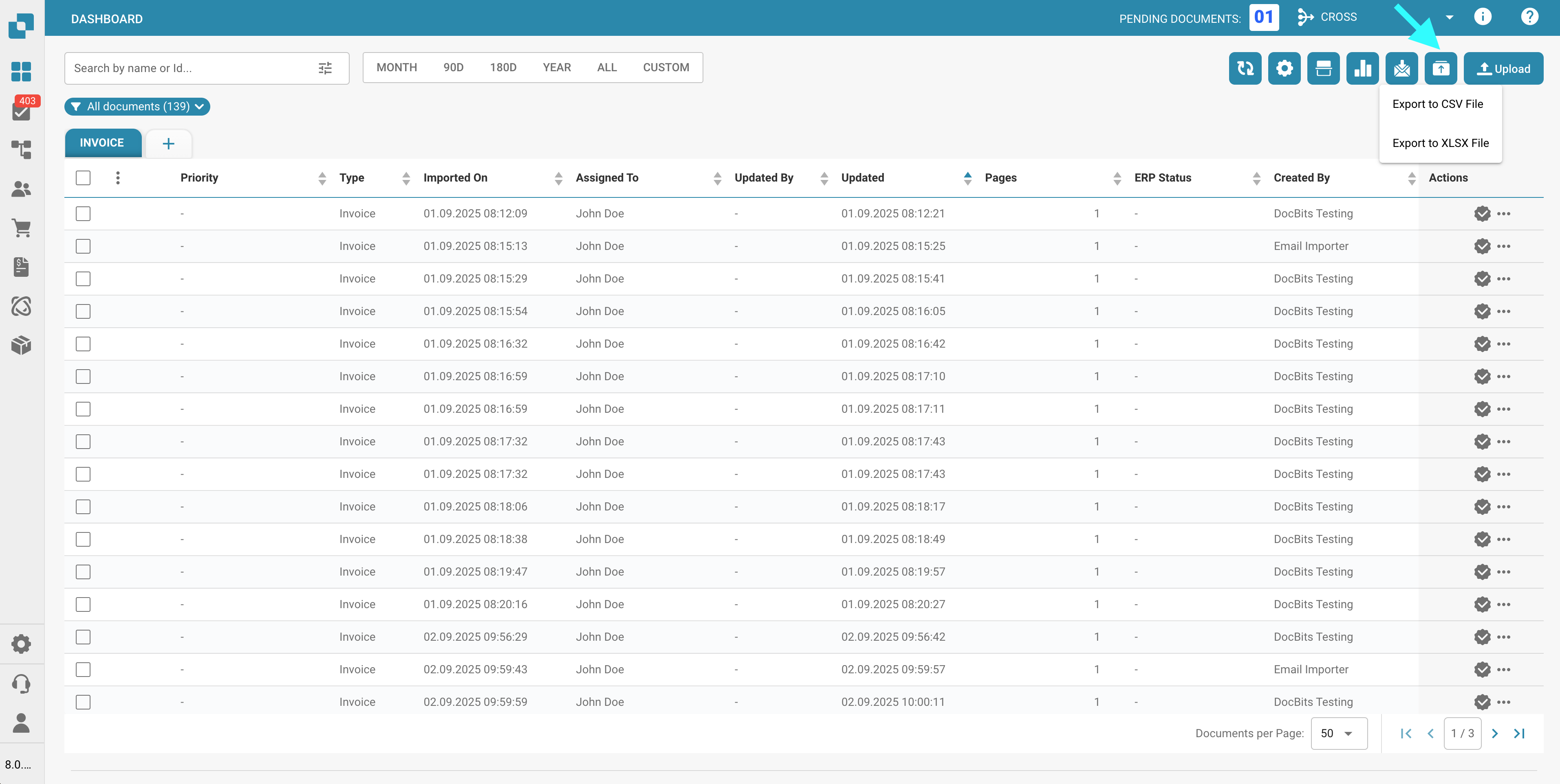 Use this button to export all documents currently displayed on the dashboard, based on the number of documents shown per page.\