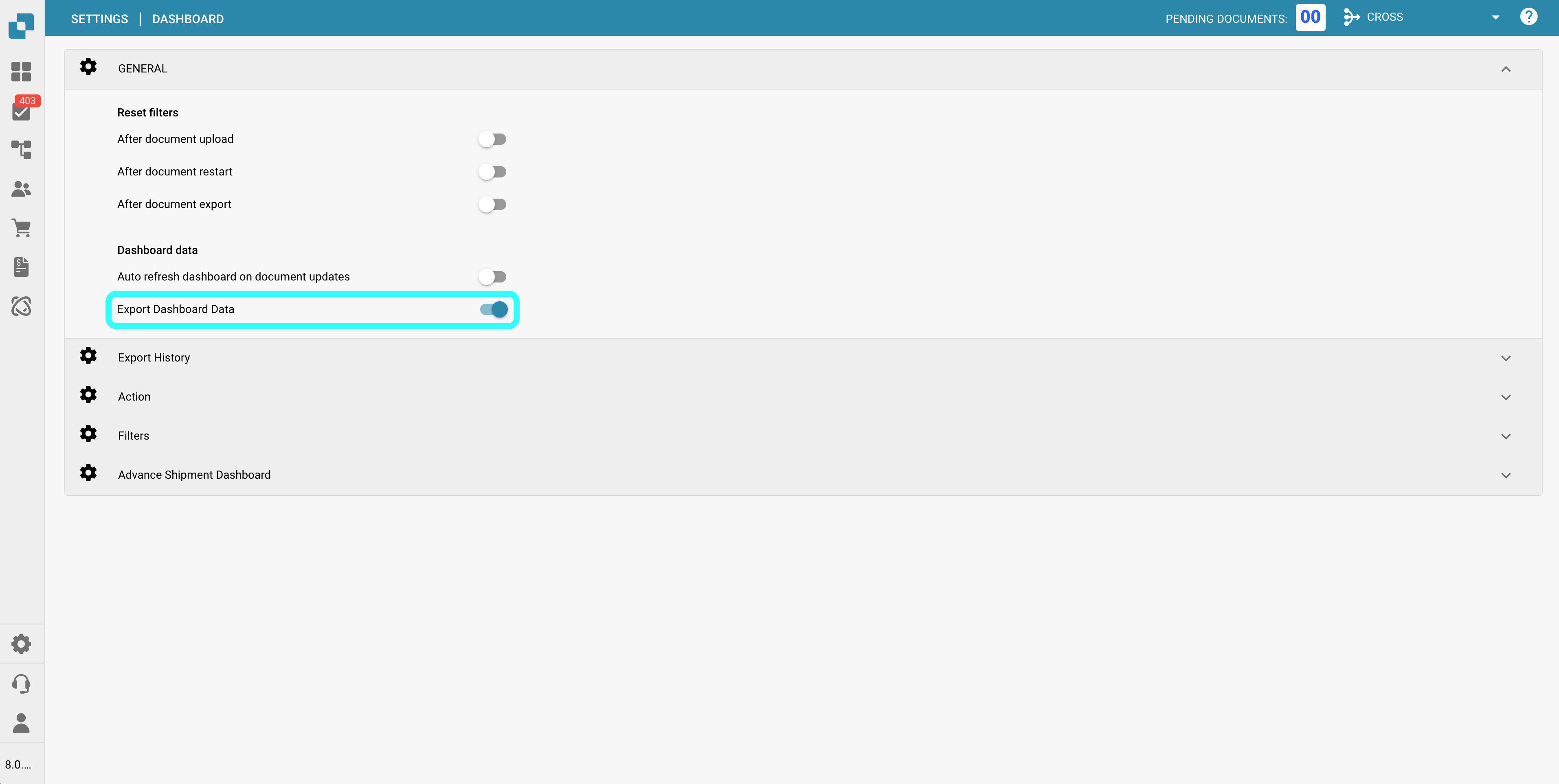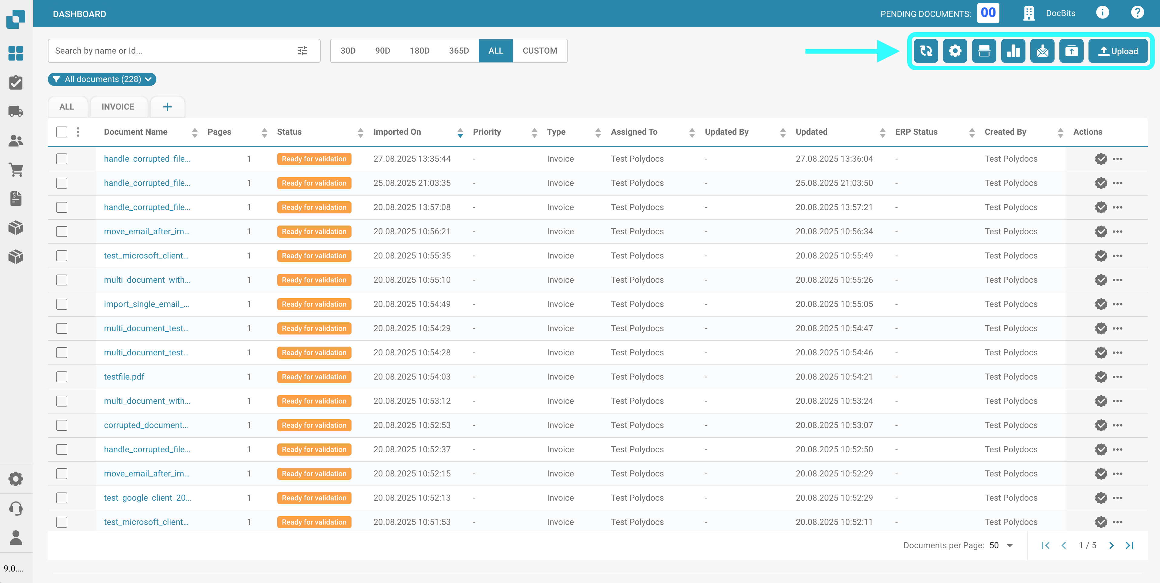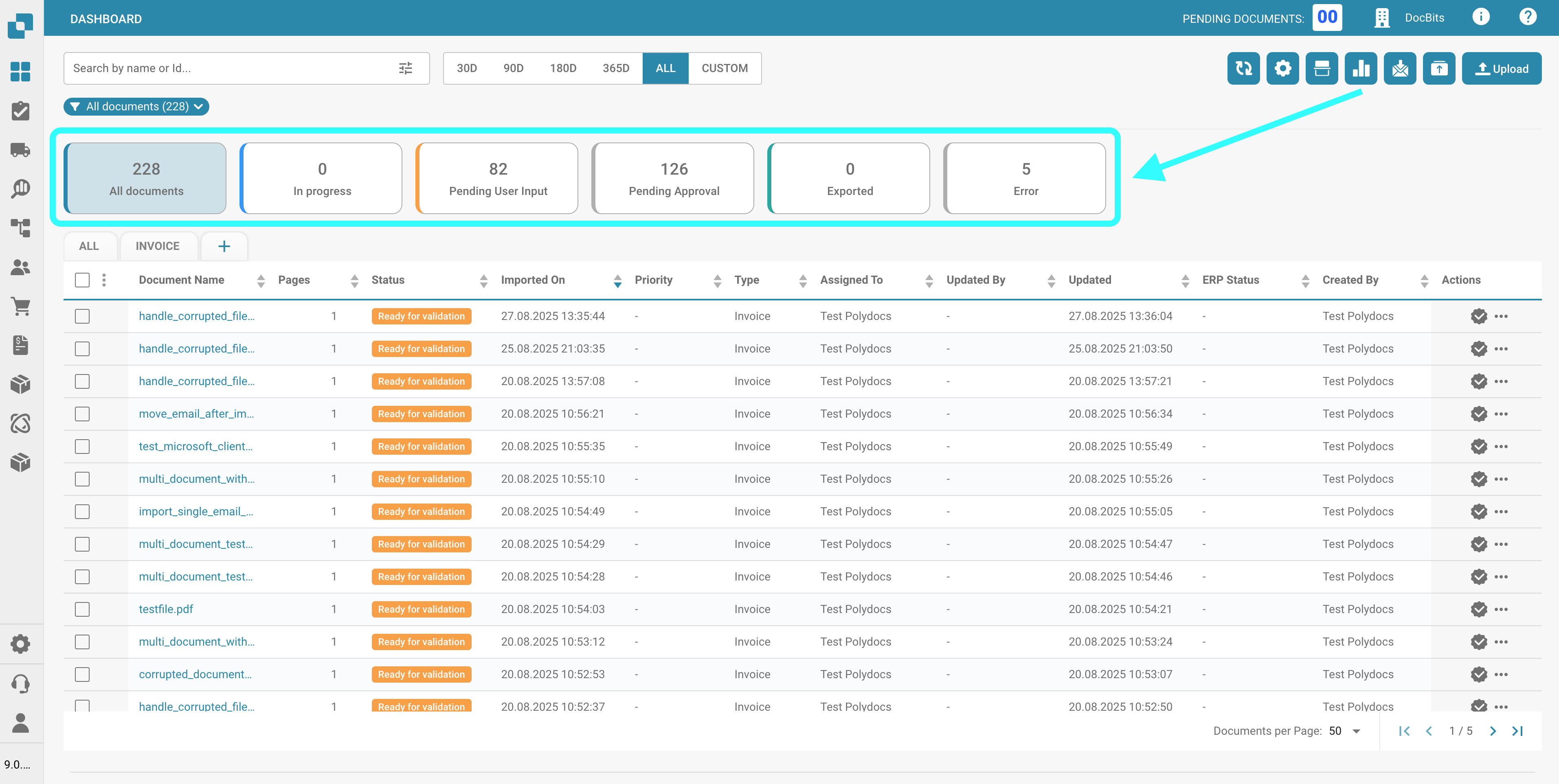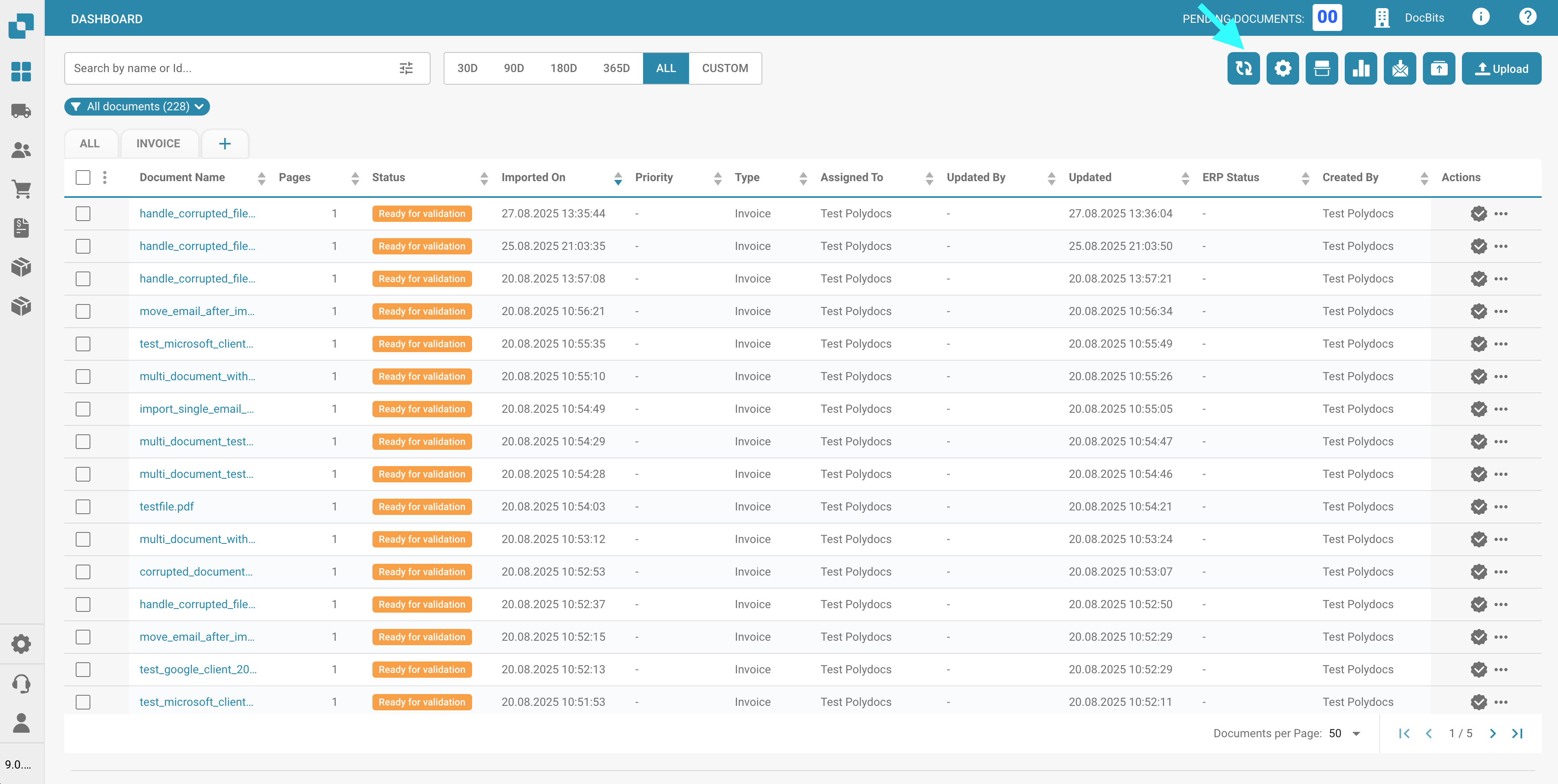 Use this button to export all documents currently displayed on the dashboard, based on the number of documents shown per page.\