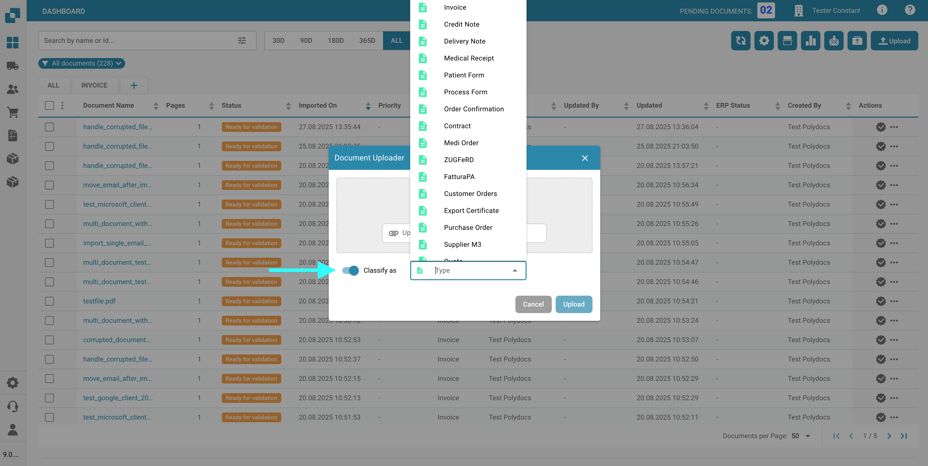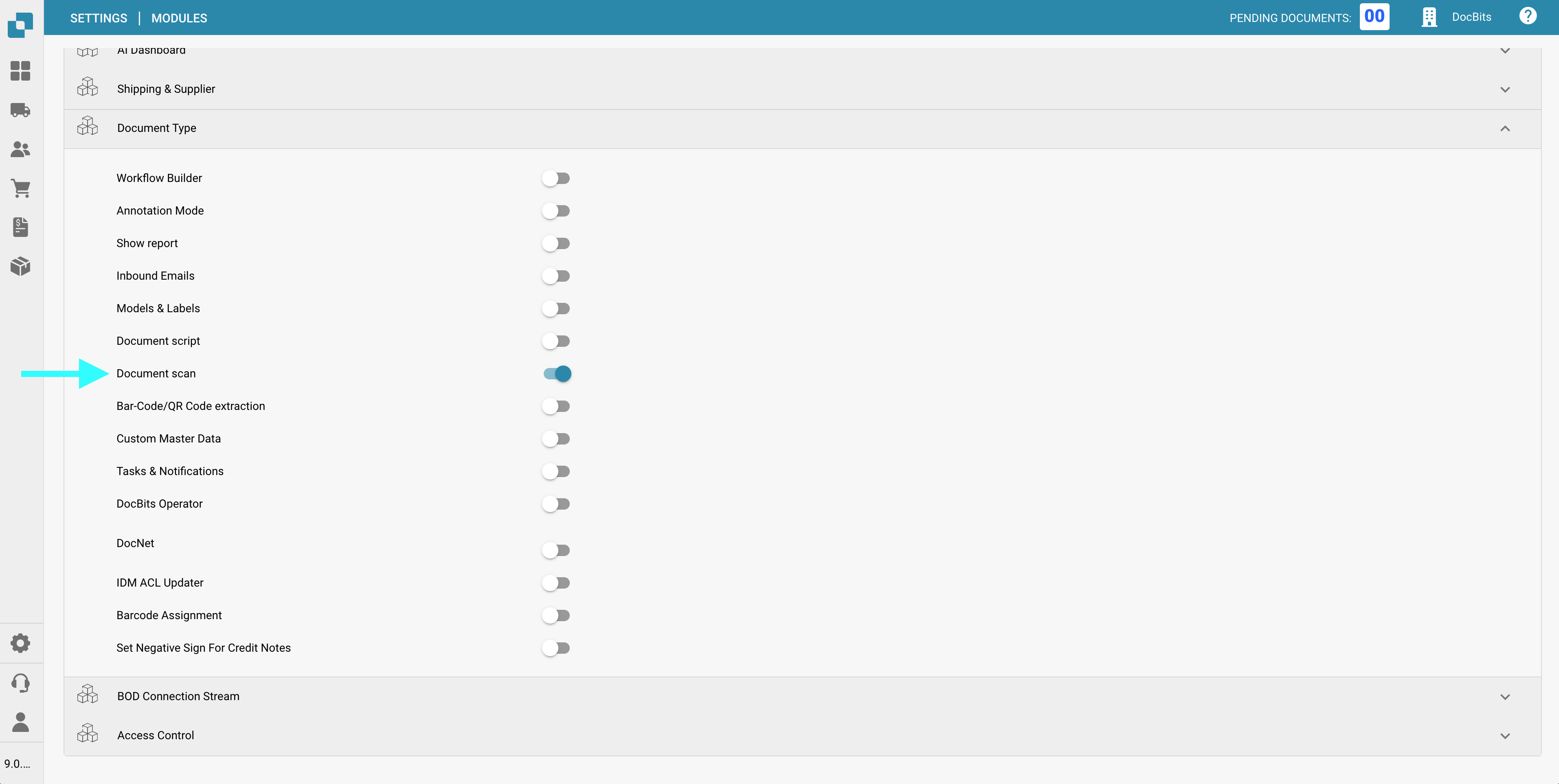 <mark style="color:red;">**Note**</mark>: This feature must be activated under **Settings -> Document Processing -> Module -> Document Type -> Document scan**