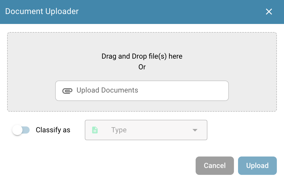 You can either drag and drop files into the pop-up window or click **Upload Documents** to select them from your file explorer.