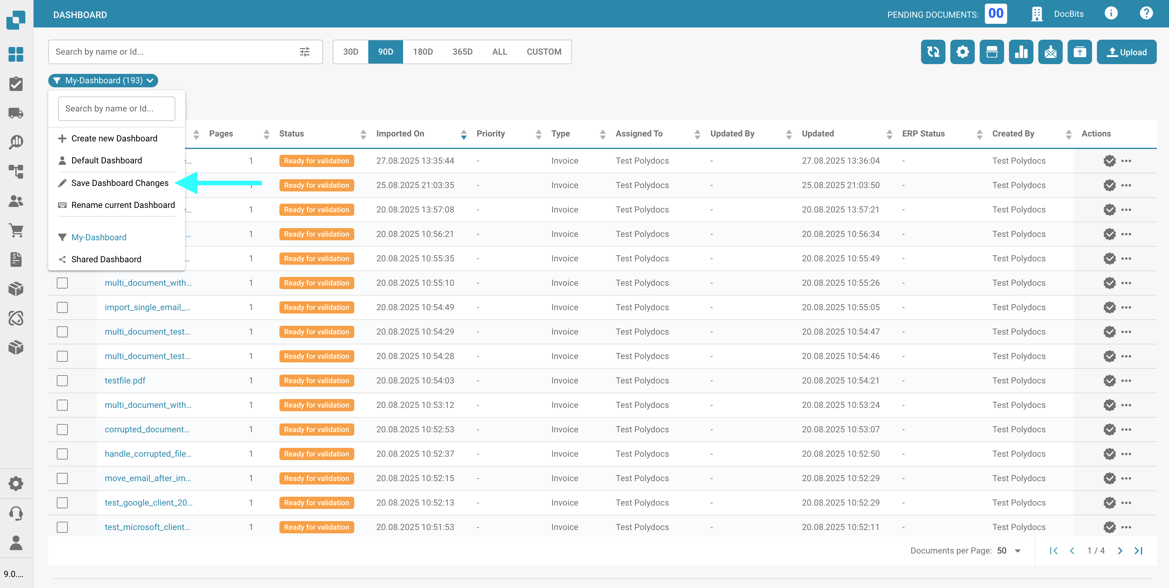 Once you've made your changes, click the filter button below the search bar, then select **Save Dashboard Changes**.