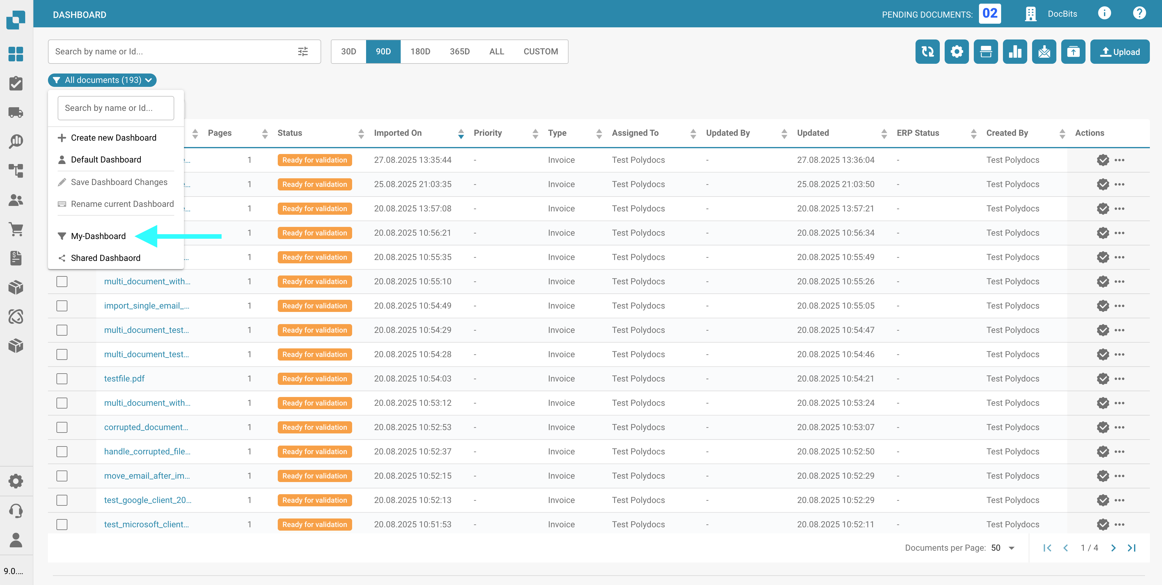 2. In the dropdown menu, select a dashboard from the list of personal or shared dashboards.