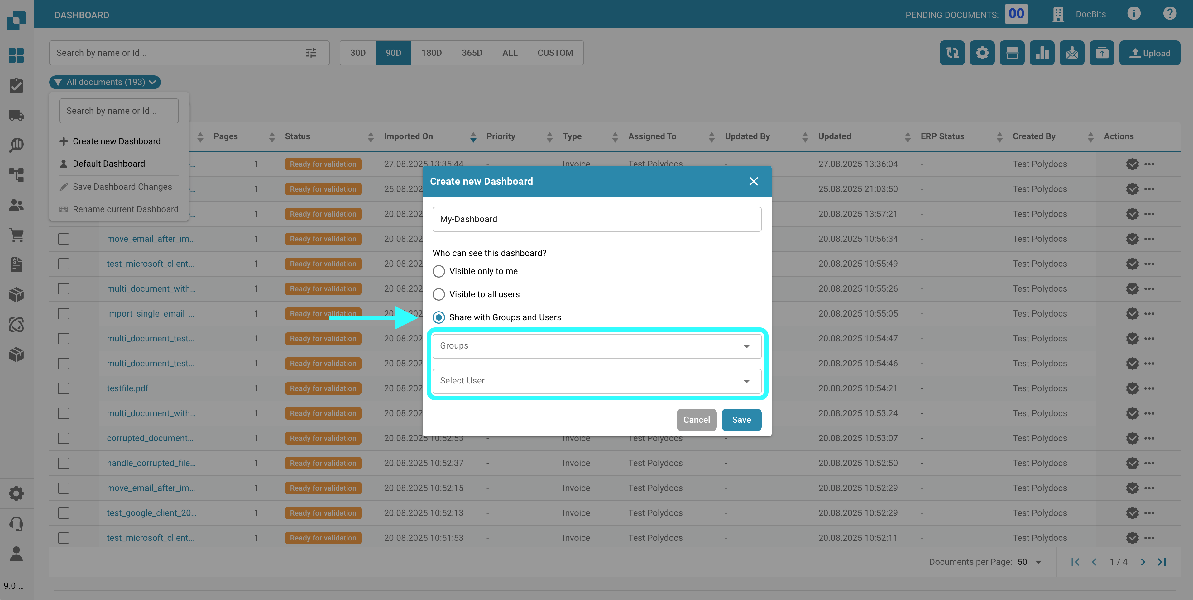 * **Share with groups and users**: Select specific users or user groups who will have view access to the dashboard.