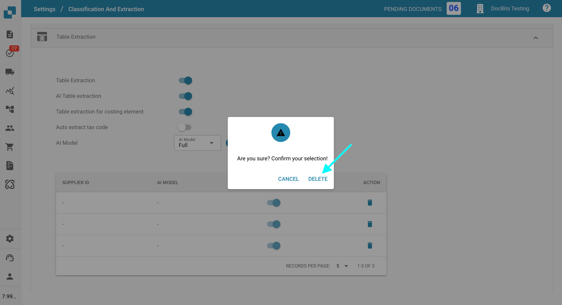 Una vez eliminada, el proveedor volverá a utilizar el modelo de IA predeterminado para la extracción de campo y la extracción de tabla.