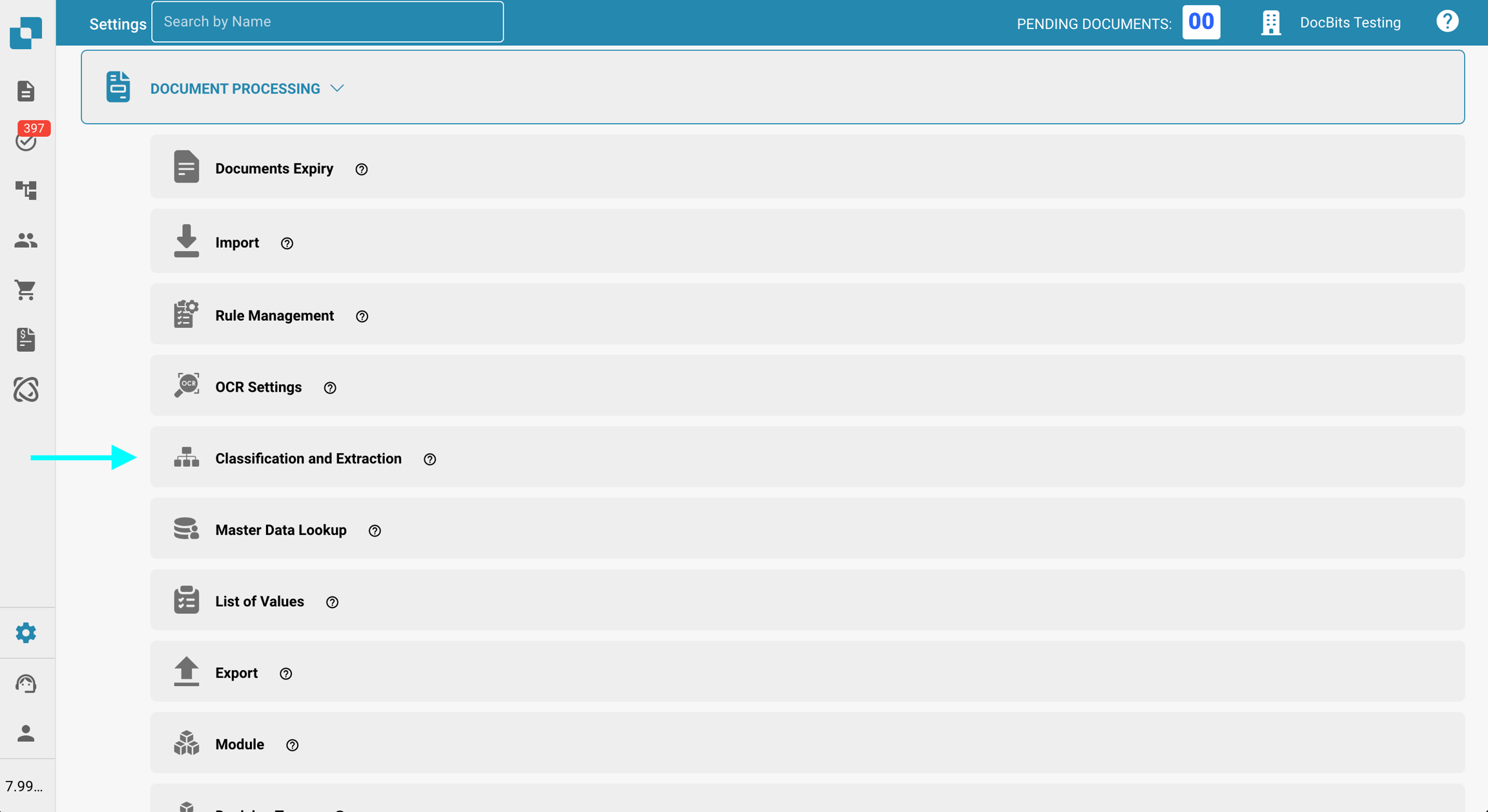 Navega a Configuración → Procesamiento de documentos → Clasificación y extracción