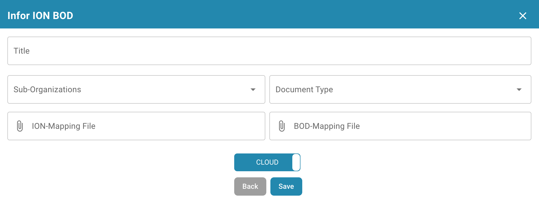 Cloud / On-Prem Toggle Un interruptor para indicar el tipo de implementación de Infor: