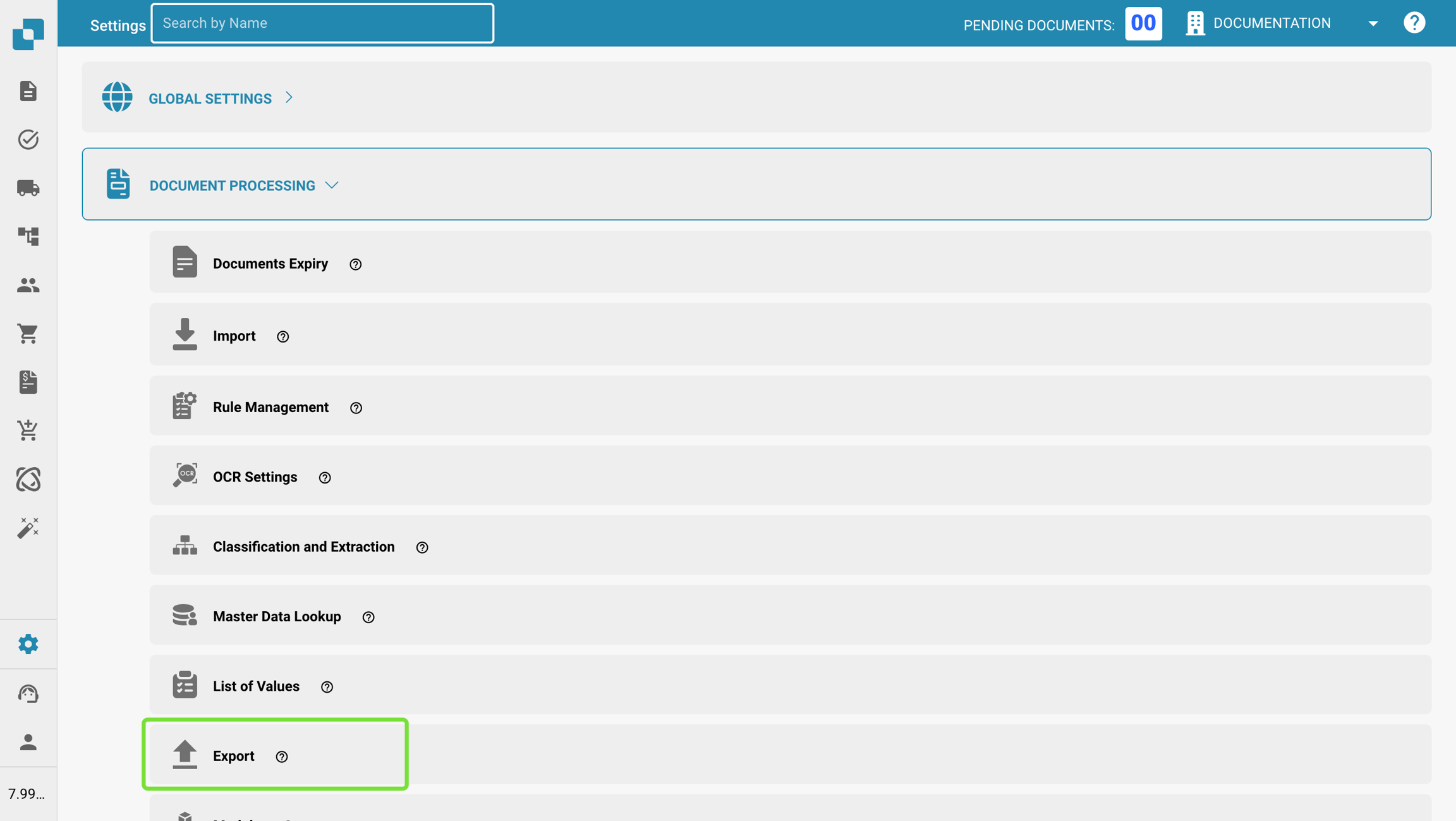 Puede encontrarlo en: Configuración → Procesamiento de documentos → Exportar