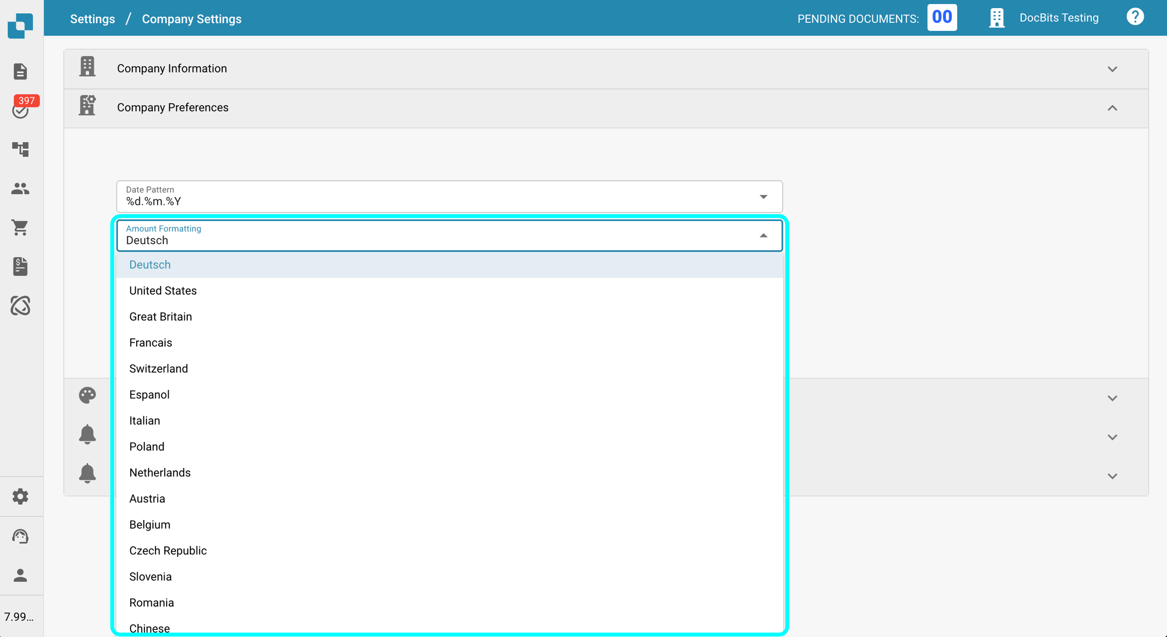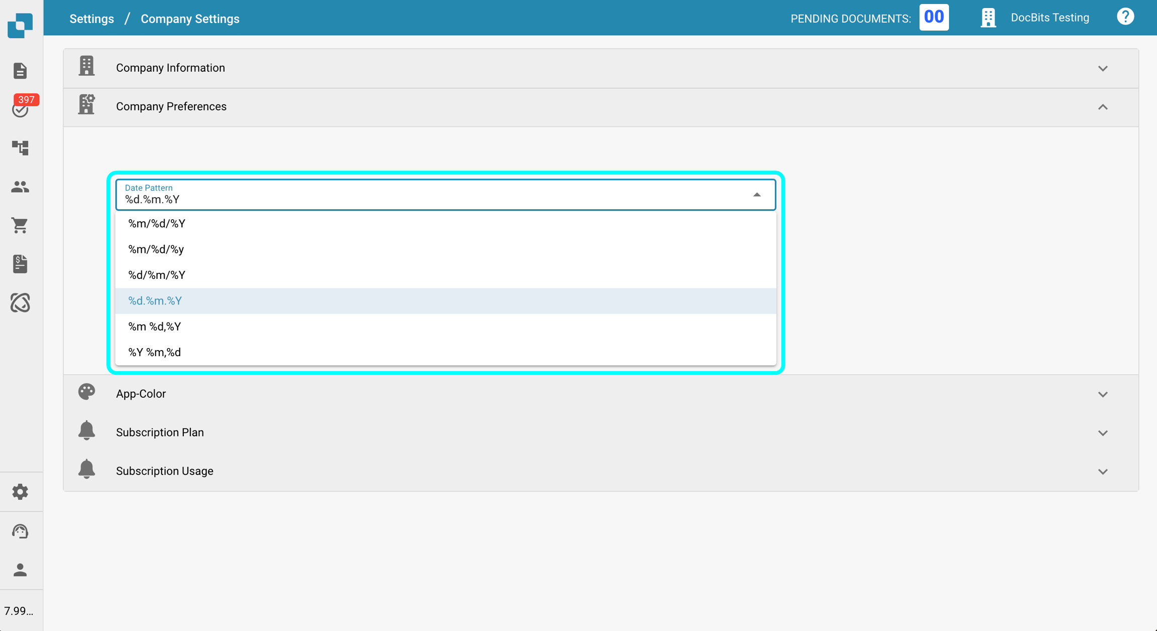 En esta configuración, puedes elegir el formato de fecha que se utilizará en DocBits. Hay varias opciones de formato disponibles, lo que te permite personalizar cómo se muestran las fechas.