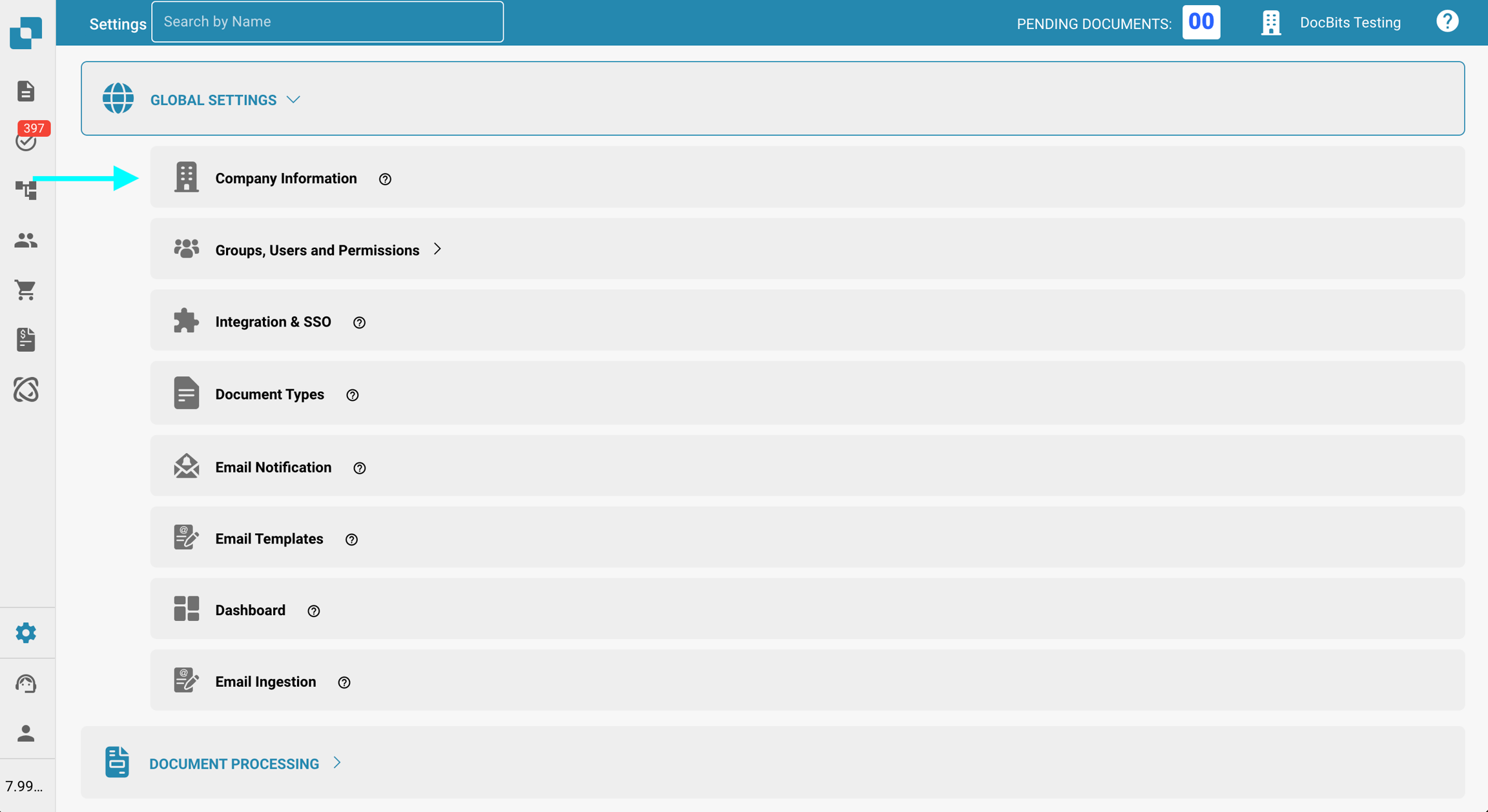 Navega a Ajustes → Ajustes globales → Información de la empresa