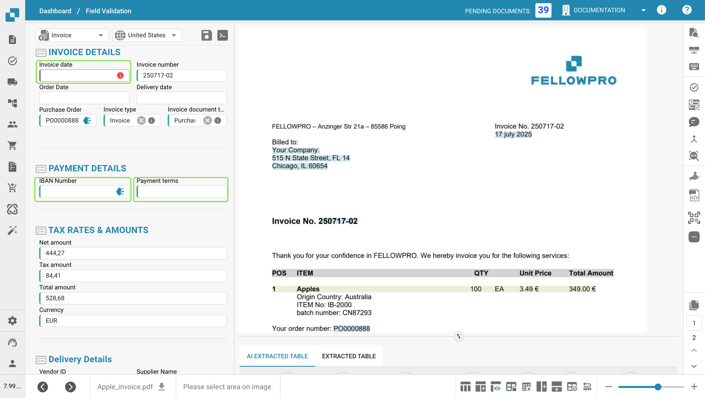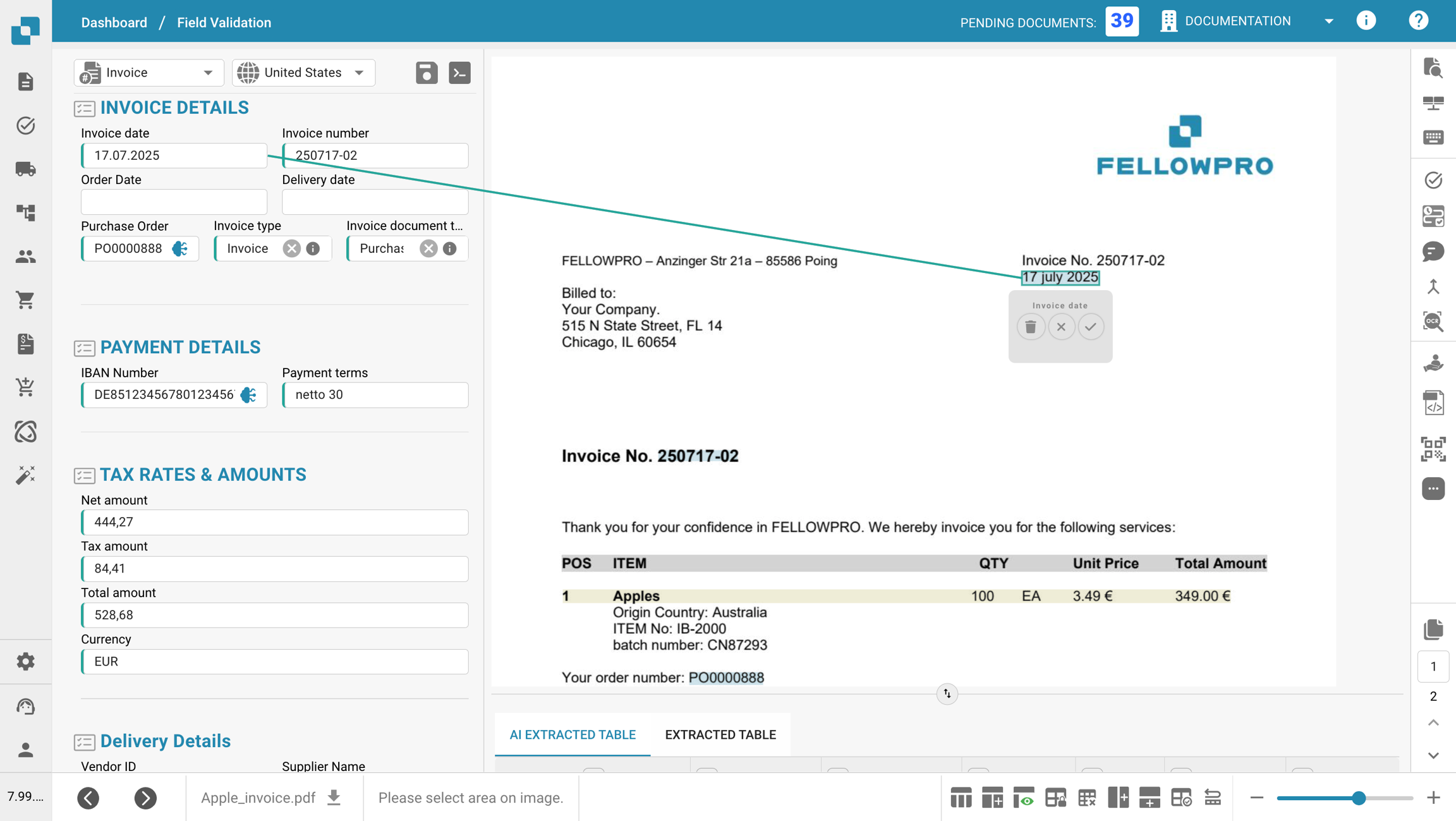 Después de guardar, su documento estará listo para ser exportado, y la próxima vez, DocBits extraerá automáticamente los campos entrenados.