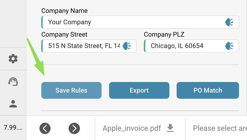 Repita este proceso para todos los campos requeridos. Una vez que todos los campos necesarios hayan sido completados, haga clic en "Guardar Reglas" para almacenar el entrenamiento. Esto asegura que DocBits aprenda dónde encontrar cada pieza de información para documentos similares en el futuro.