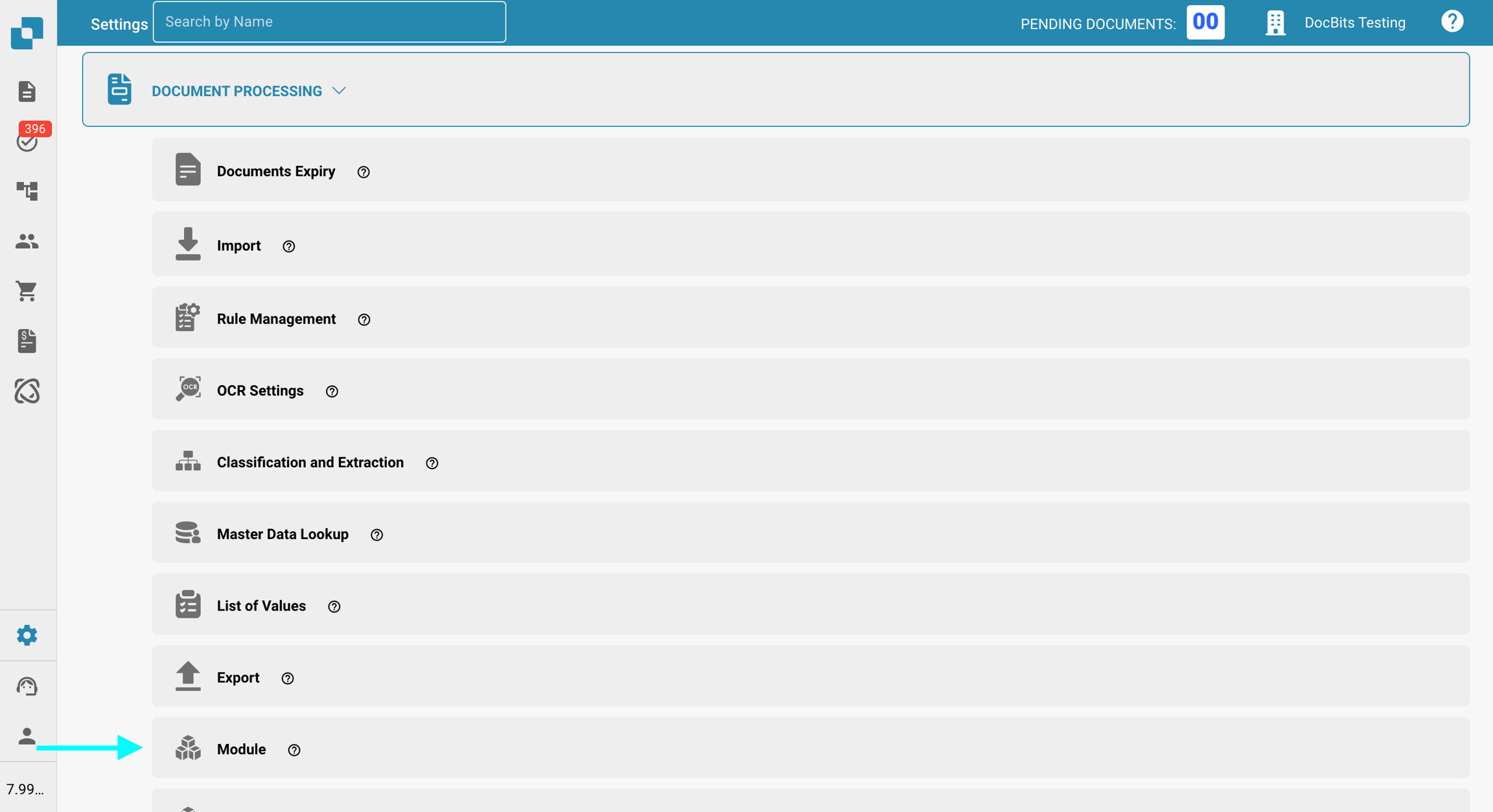 Ve a Ajustes → Procesamiento de documentos → Módulo.