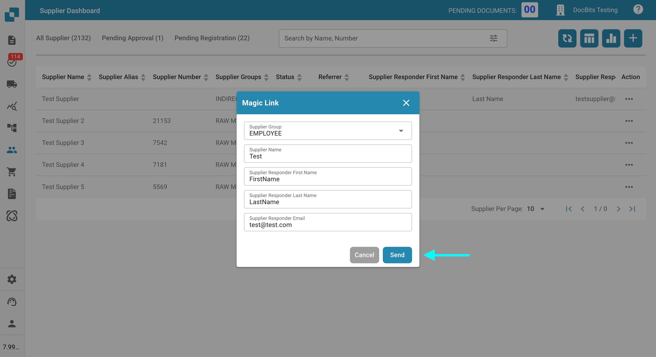 Haz clic en Enviar para enviar el enlace de registro por correo electrónico.