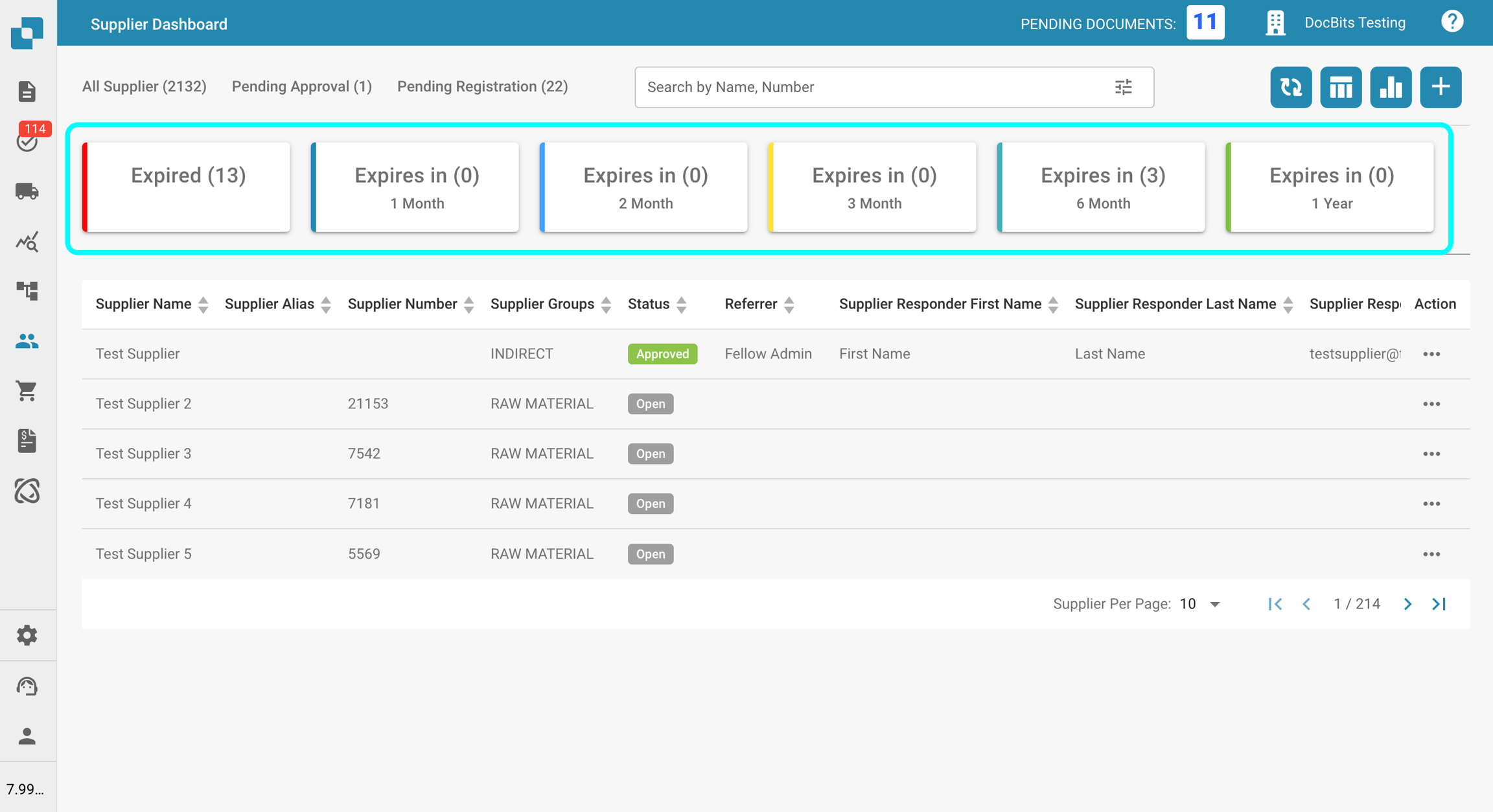 Hacer clic en este botón abrirá una nueva sección que muestra cuántos proveedores están a punto de expirar y cuándo. Haz clic en cualquier categoría para aplicar un filtro y ver solo esos proveedores.