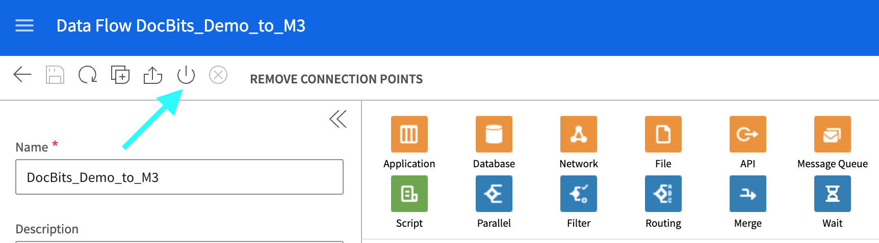 DocBits_Importno existe, consulte el Paso 1 y el Paso 2 de la documentación Import from M3 para crear el Connection Point.