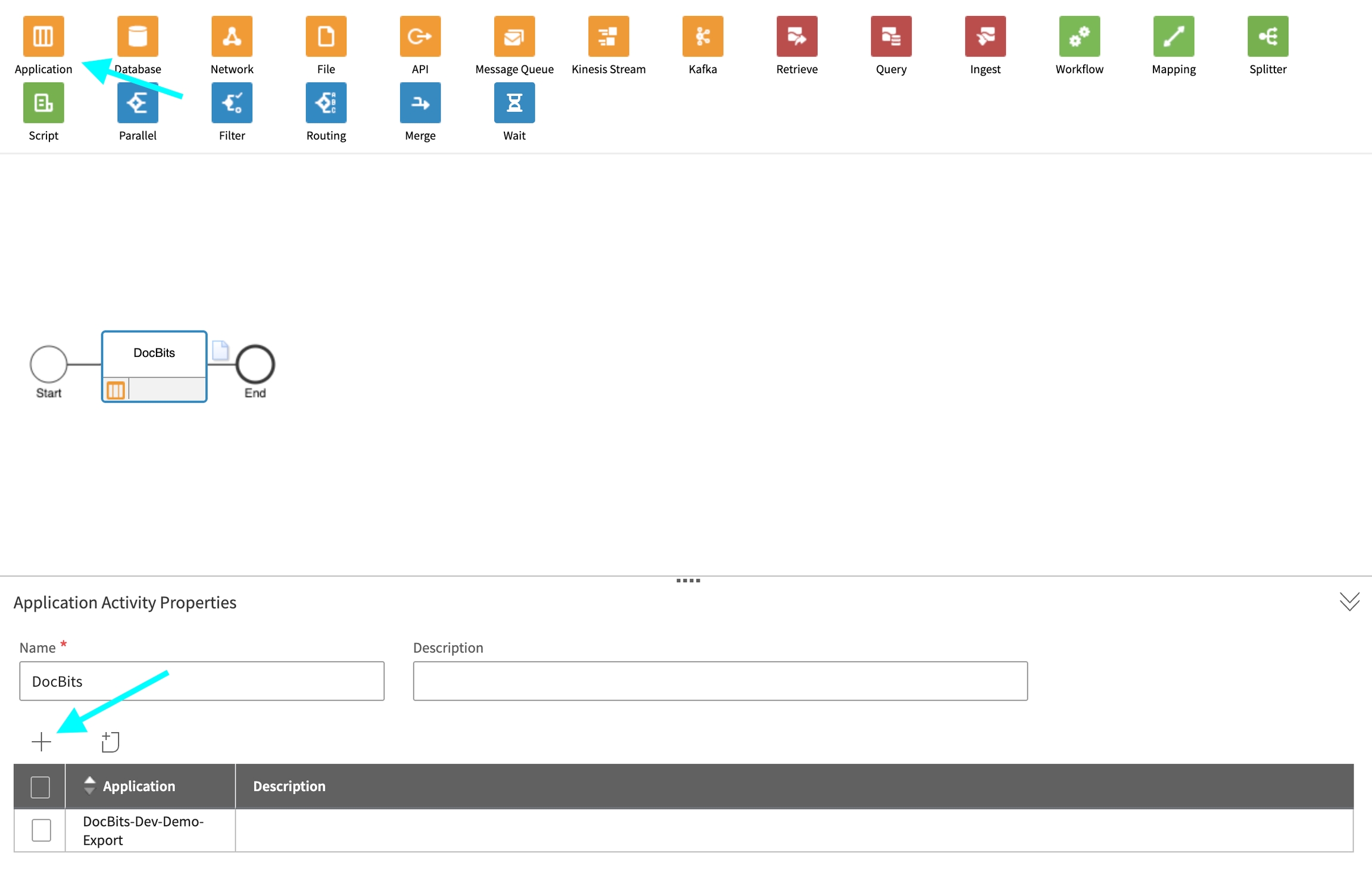Agregue un Application Node al flujo.