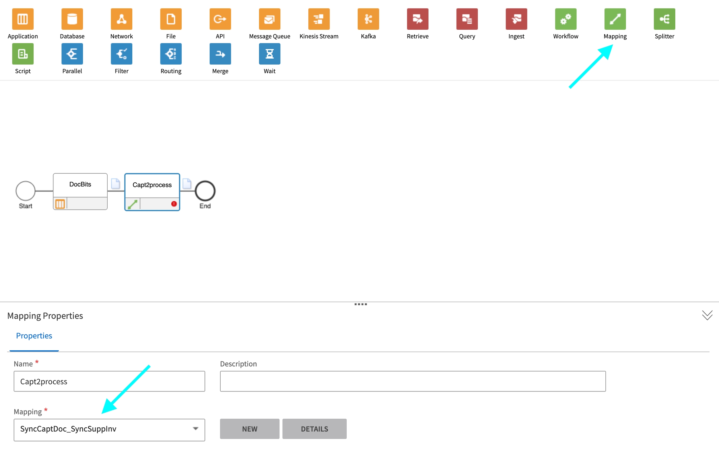 Agregue un Mapping Node a la derecha del Application Node.
