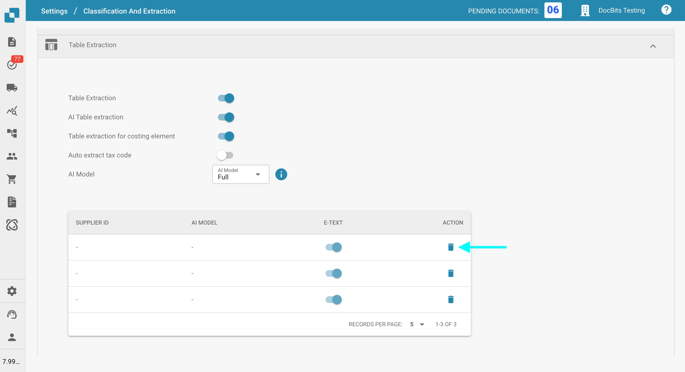 Une fois supprimé, le fournisseur reviendra à l'utilisation du modèle d'IA par défaut si l'extraction de table AI est en cours d'utilisation.