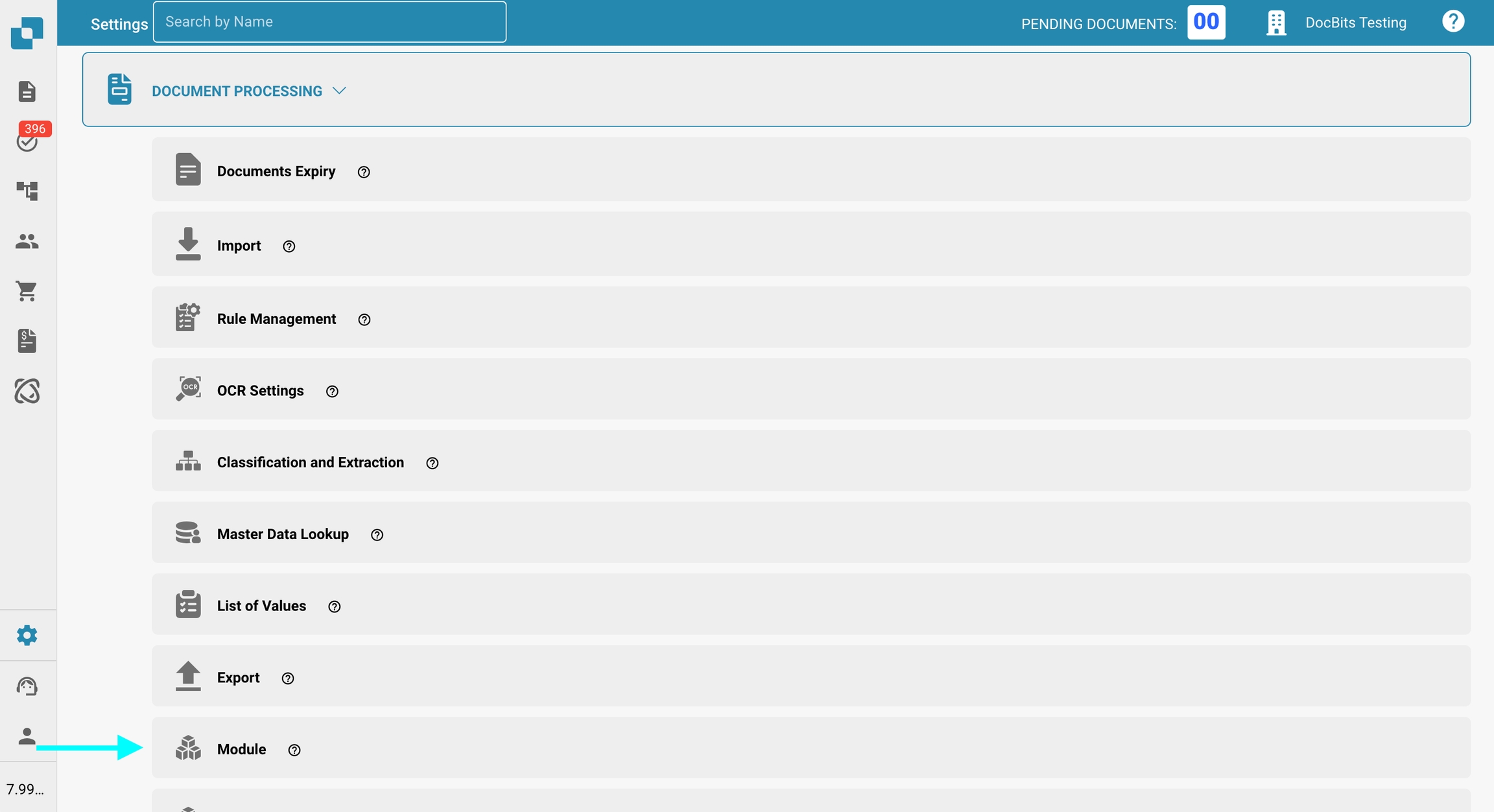 Allez dans Paramètres → Traitement des documents → Module.