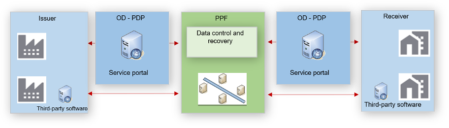 Editors will be able to offer software based on the APIs. Depending on the mode chosen by the editor, connection can then be effected by the editor, or by the customer itself during installation or deployment in its IS. This third-party software will complement the customer’s information system by adding a communication layer to the PPF.