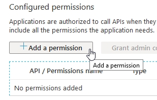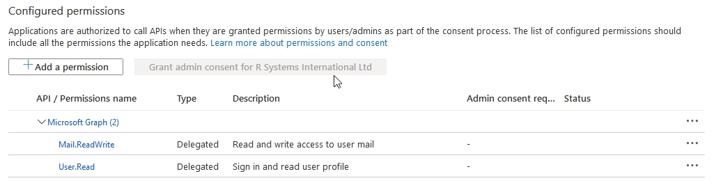 Isso adicionará a permissão Mail.ReadWrite à lista de Configured permissions para o App.